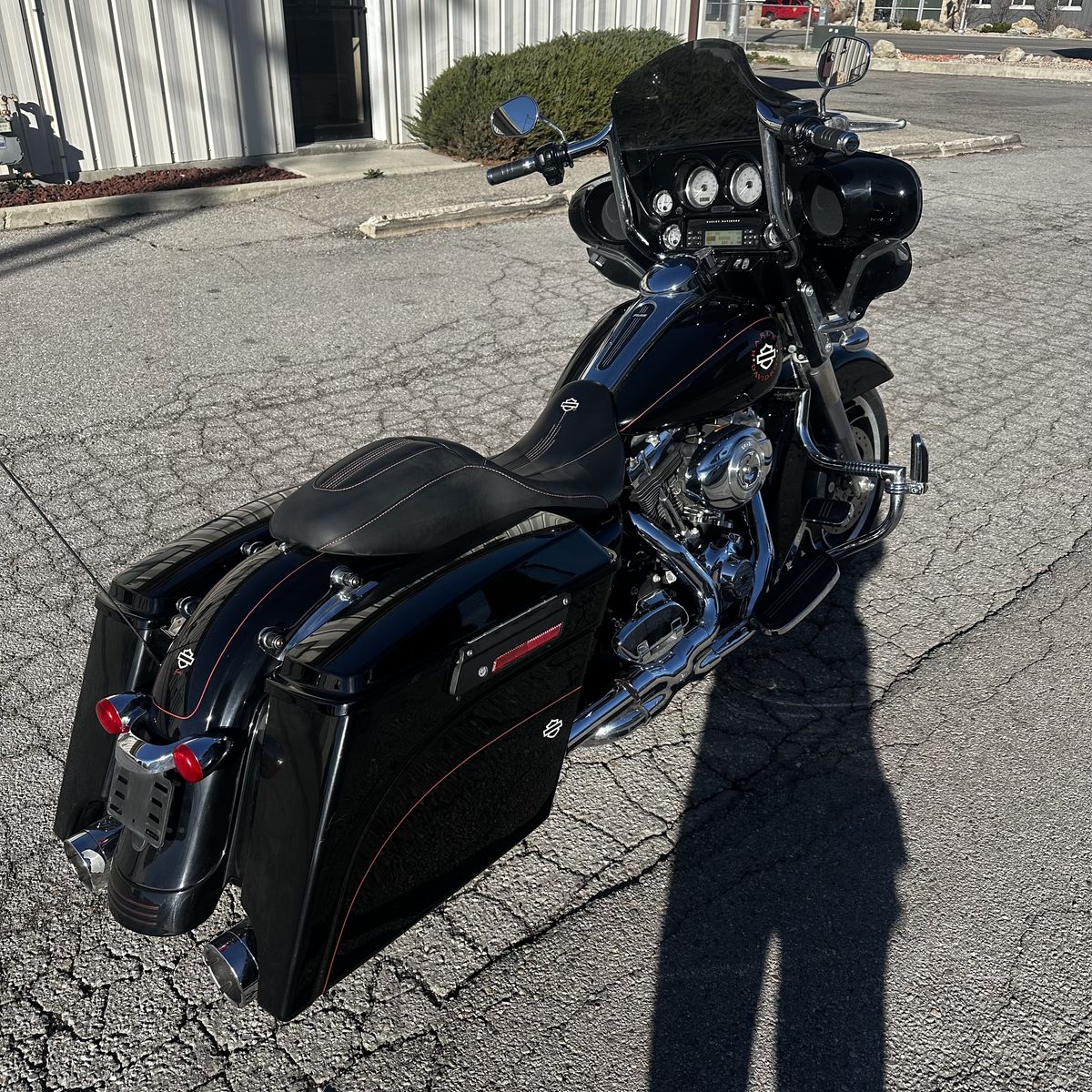 This Street Glide has the tried and true 103 engine with a full system exhaust upgrade that sounds great! It also has upgraded handlebars for added comfort. This bike is a blast to ride and listed at a great price! Just 25,000 miles and a clean title!