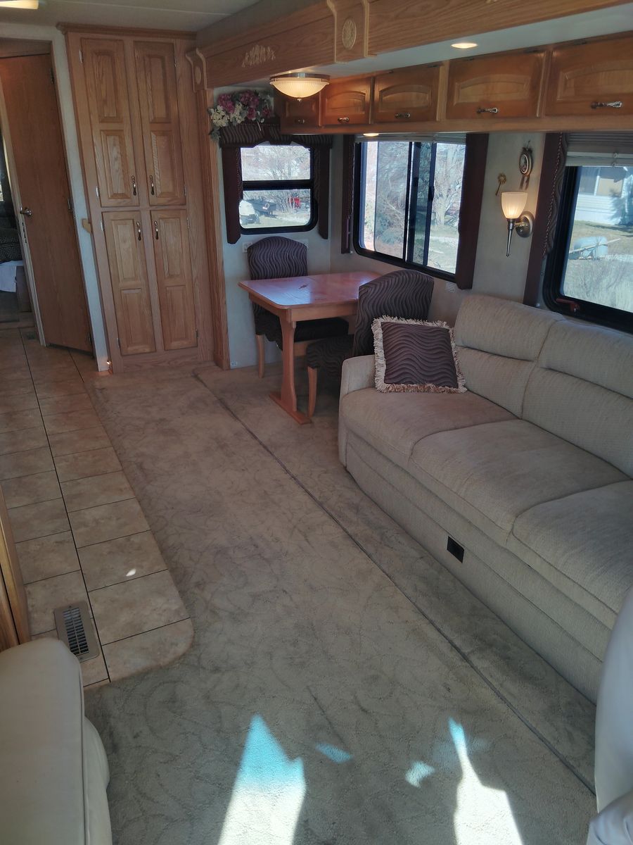 On a spartan chasis, cummins engine 350 hp alison transmission, 3623 model, 101507. miles, 3 slide outs, 2 a/c units, onan generator, washer & dryer, queen bed walk around,