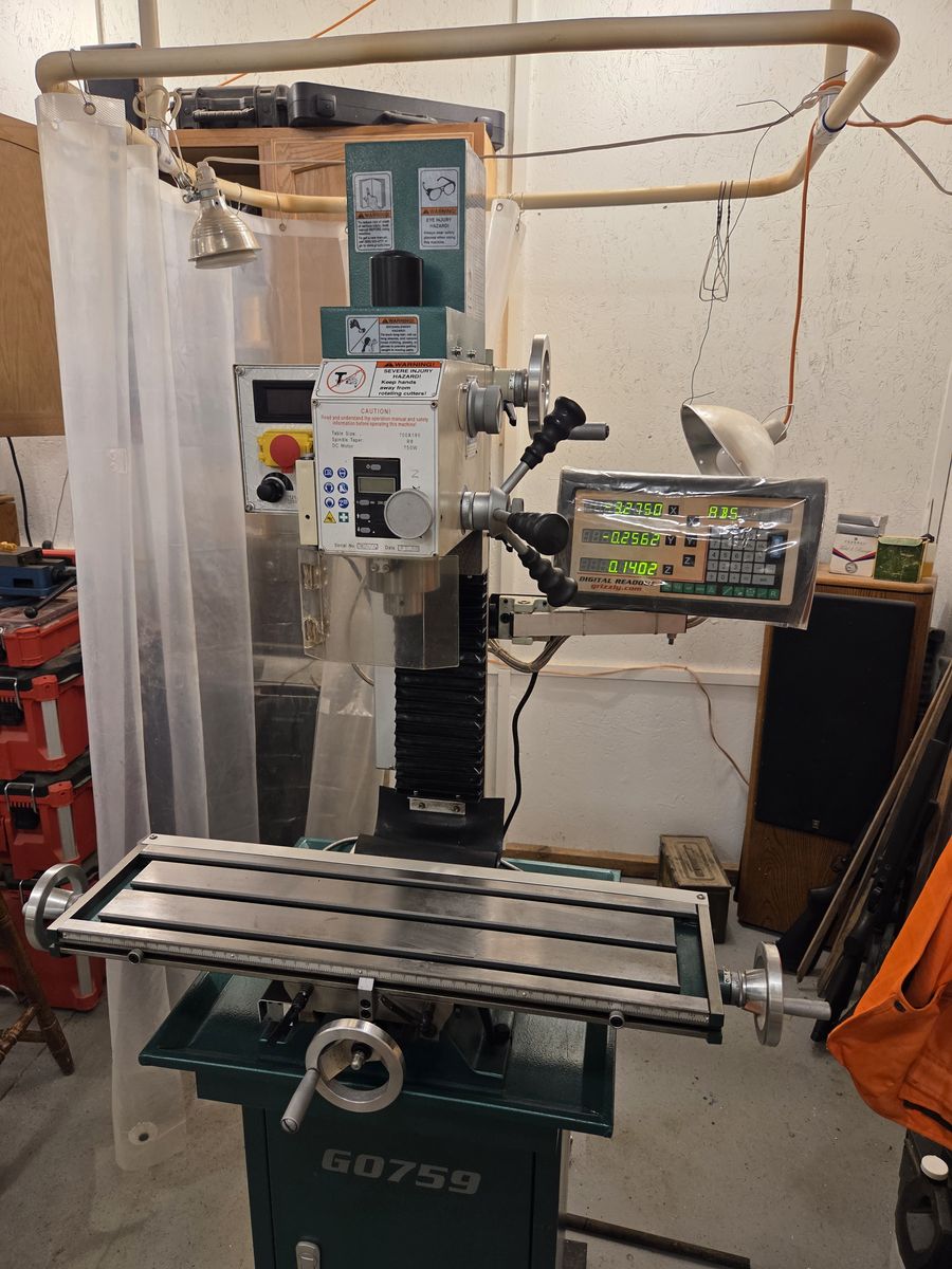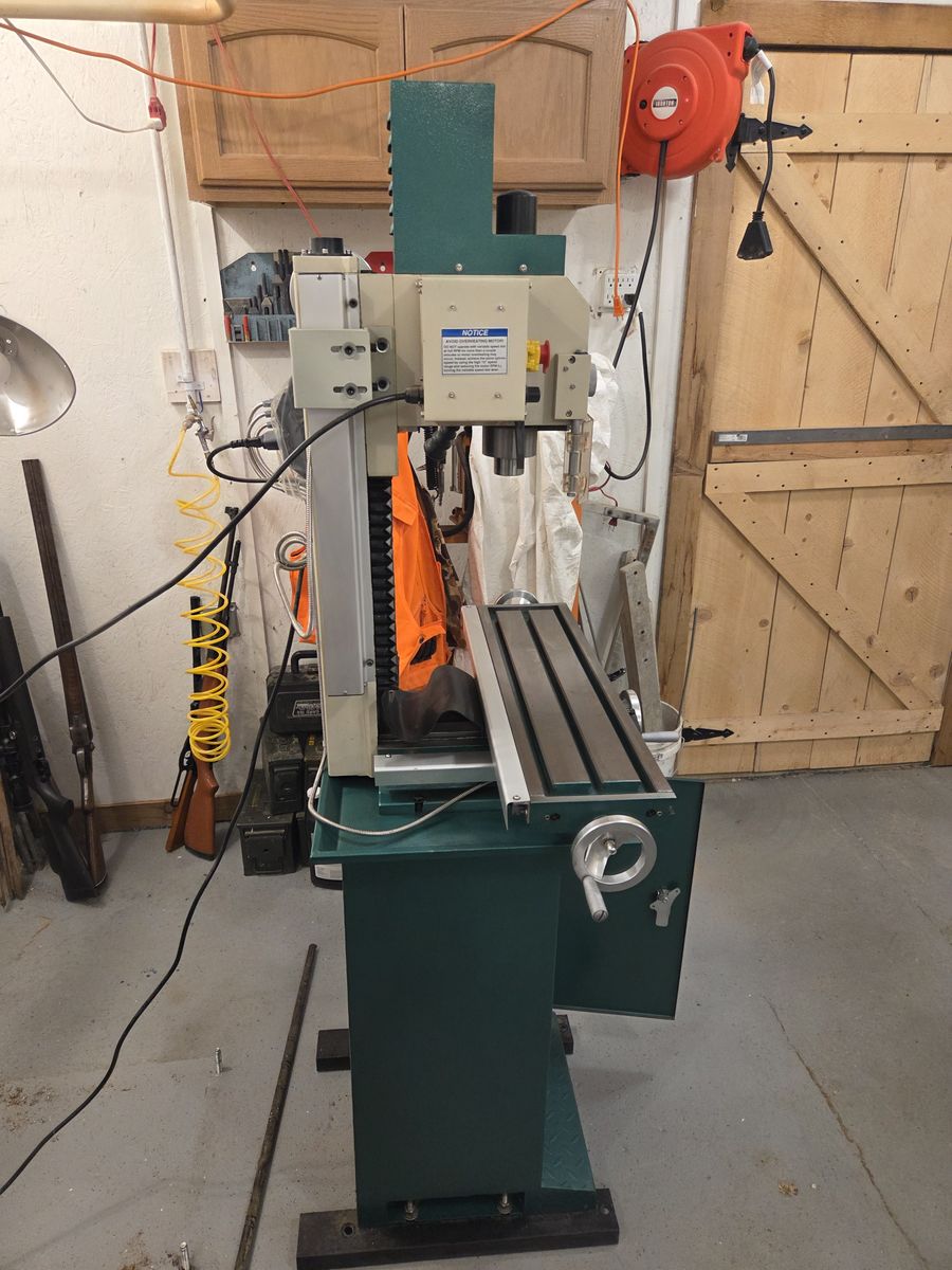VenmoVery clean Model G0759. Runs good, have some spare parts. Comes with 4" mill vise and 1 1/2 sets of work clamps for this machine. Requires R8 collets. Also included is tool box and all tools that came with machine.