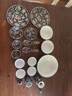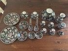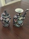 ZelleThis vintage Japanese tea and sake set features a beautiful chintz floral design on a black porcelain background, making it a unique and collectible piece. With a total of 18 pieces included in the set, this traditional Japanese tea set is perfect for serving tea or sake to guests or for adding a touch of cultural flair to your home decor. Made with quality craftsmanship and intricate detailing, this set is a charming representation of Japanese aesthetics and design.