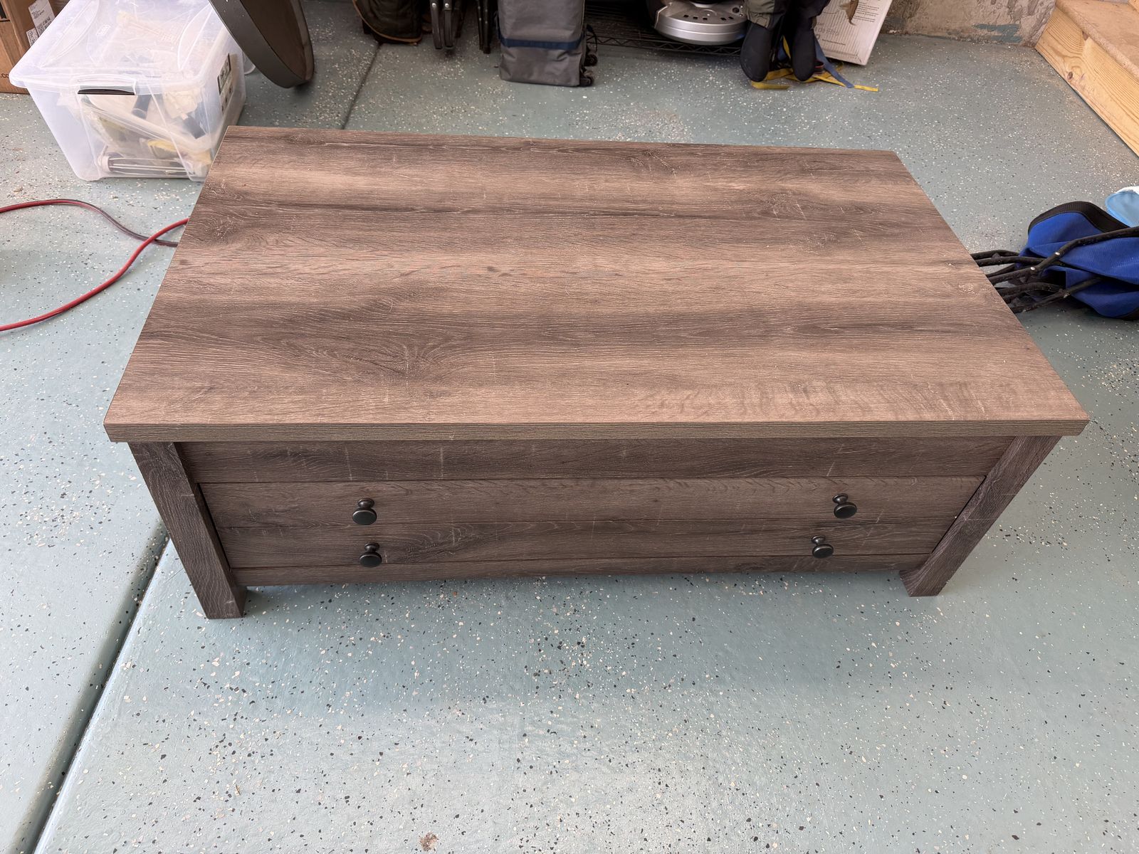 ApplePayCoffee table with drawer and lift top. Has normal wear and tear on it but no damage. Bought it from Ashely furniture.