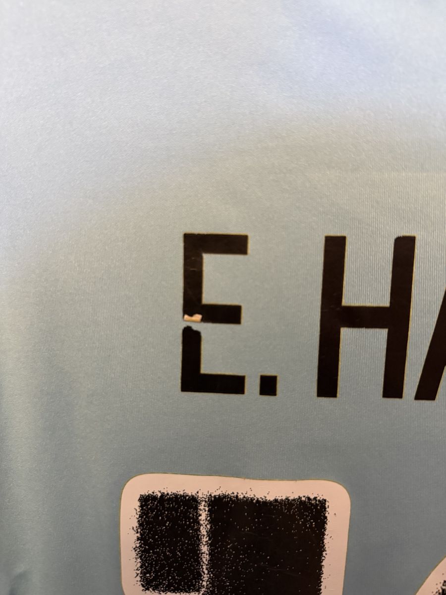 VenmoOther than the peeling on the back of the jersey, the jersey is in really good shape. The sizing label has faded away overtime, but it is a size large.