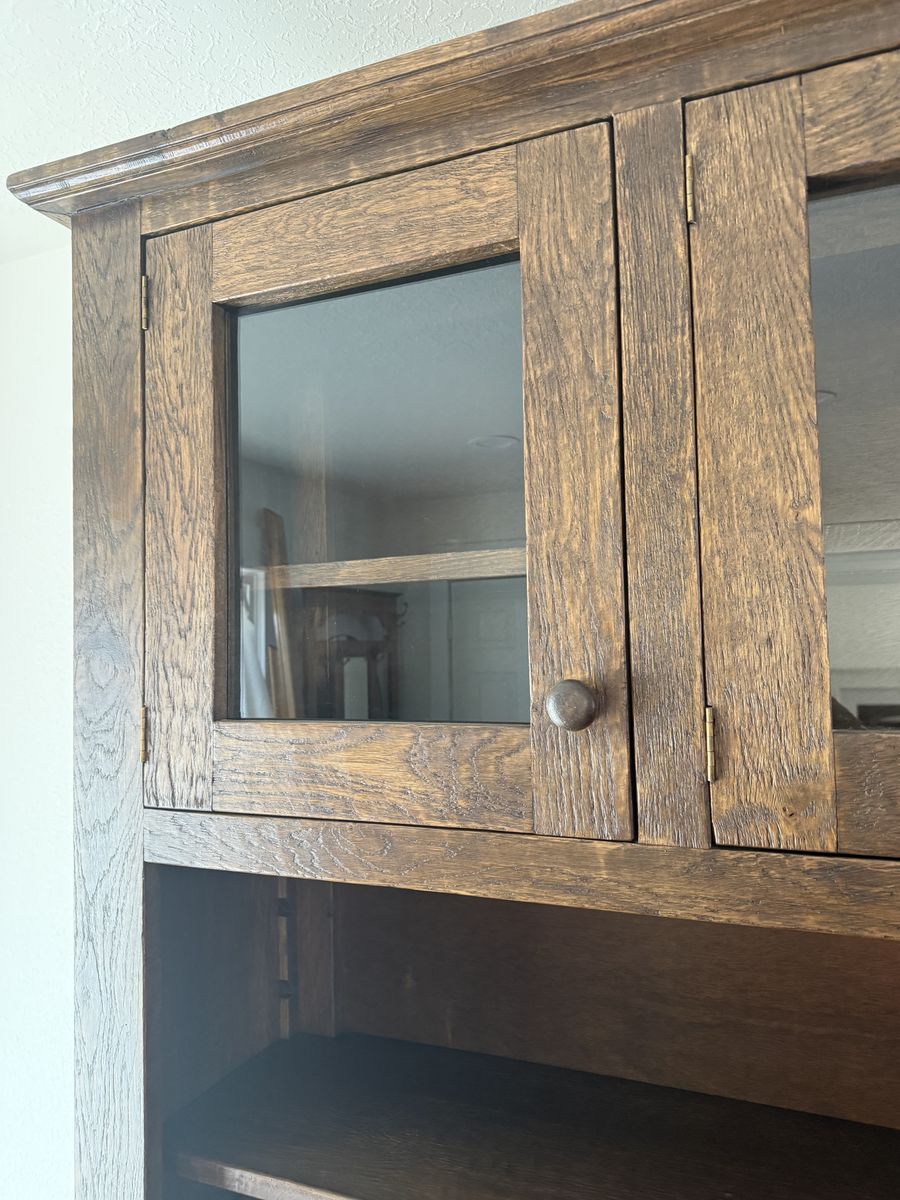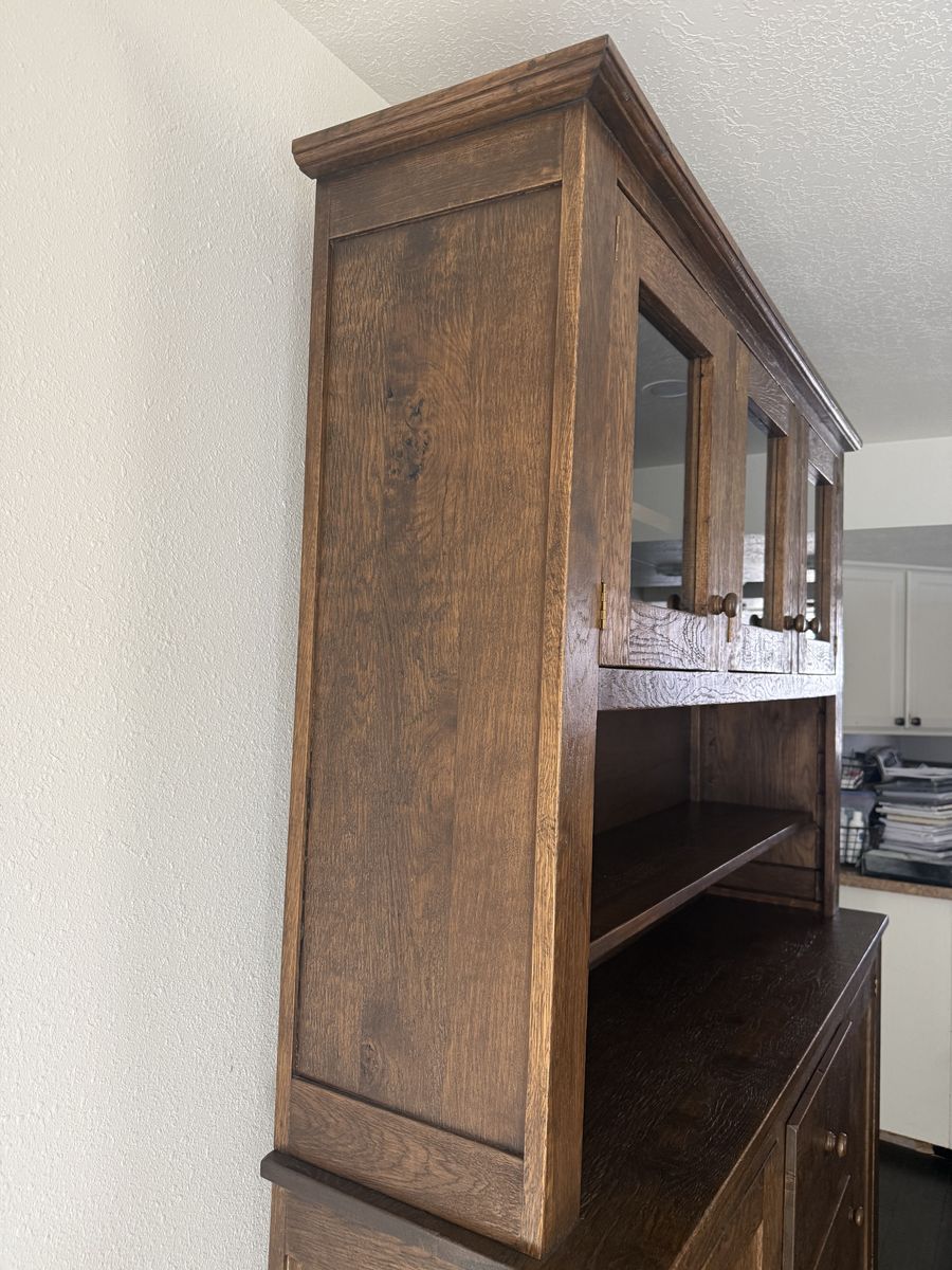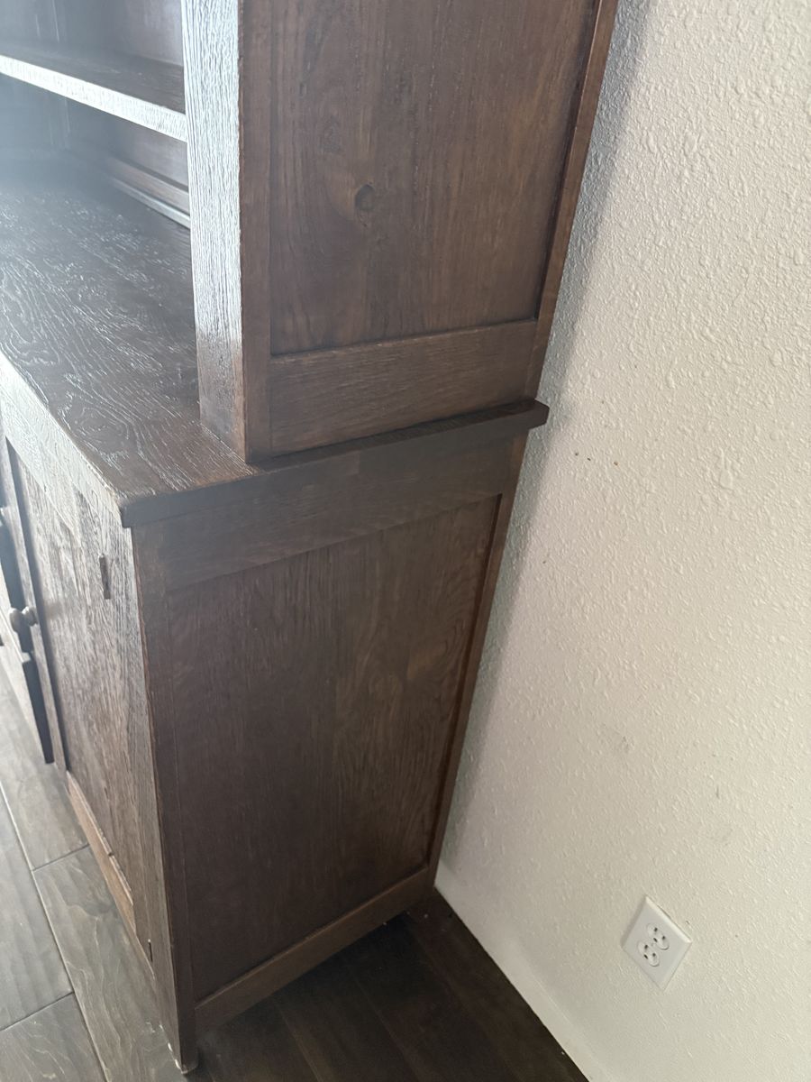 ApplePayCustom made German Reclaimed Barnwood Hutch in perfect condition is two separate pieces dimensions for base : 66/39.5/18.5 inches top piece dimensions: 64.5/47/14 inches. Paid way more than selling for. Extremely heavy piece as it is solid wood .