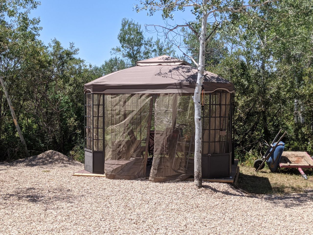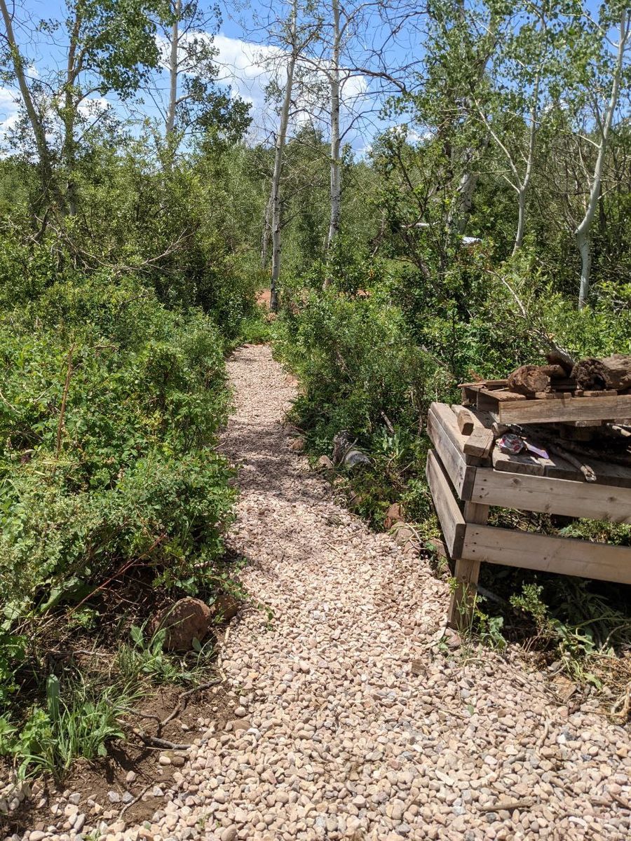 Graveled path to public outhouse, no need to pay annually for private outhouse (savings of $370 per year)