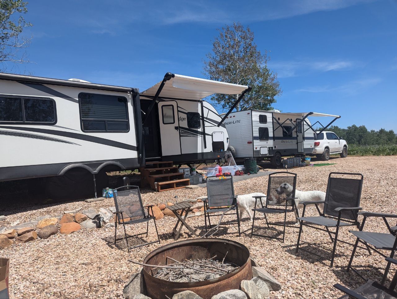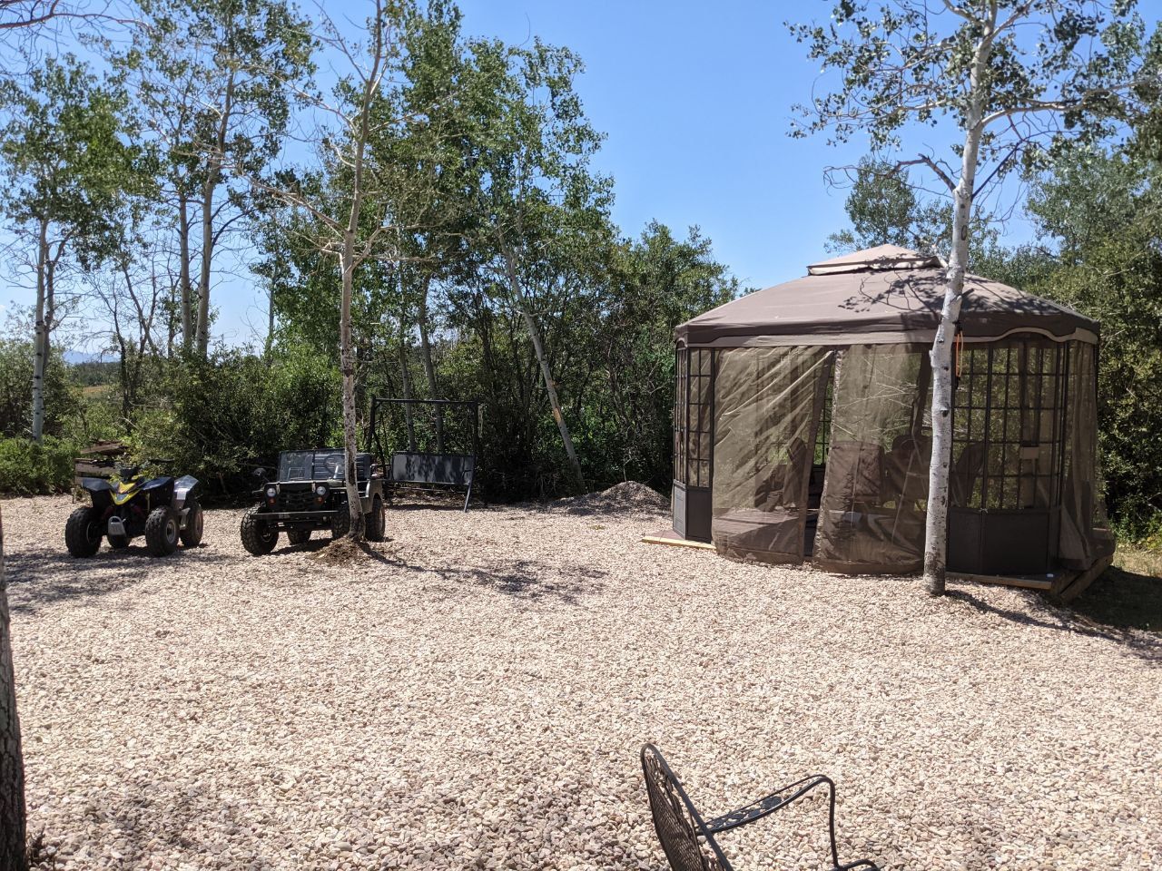 Included with the Lot: Shed for storage Gazebo with brand-new cover Fire pit for cozy evenings Blackstone grill for outdoor cooking 55-gallon water drum Wooden trailer steps Whether you're gathering around the fire, grilling up dinner, or watching the kids ride across the way, this lot makes camping easy and enjoyable from day one.