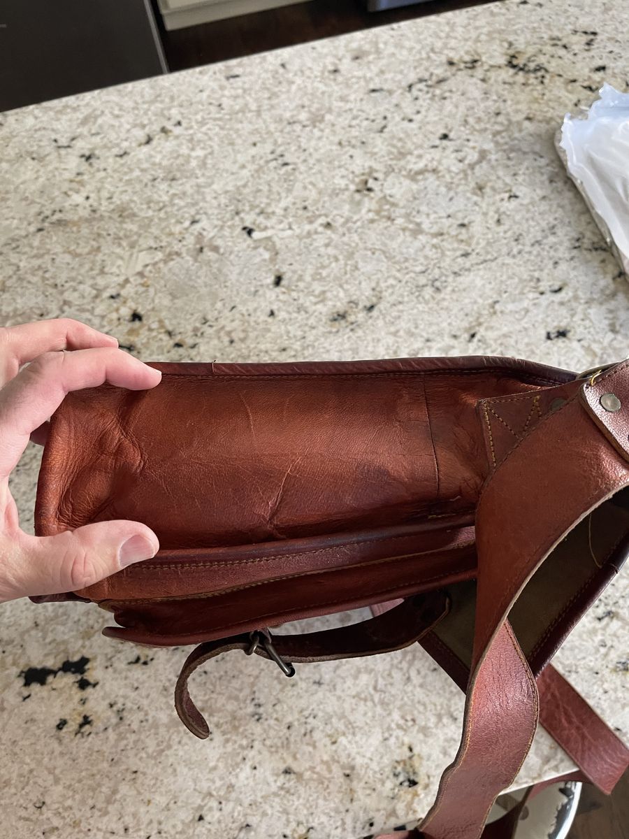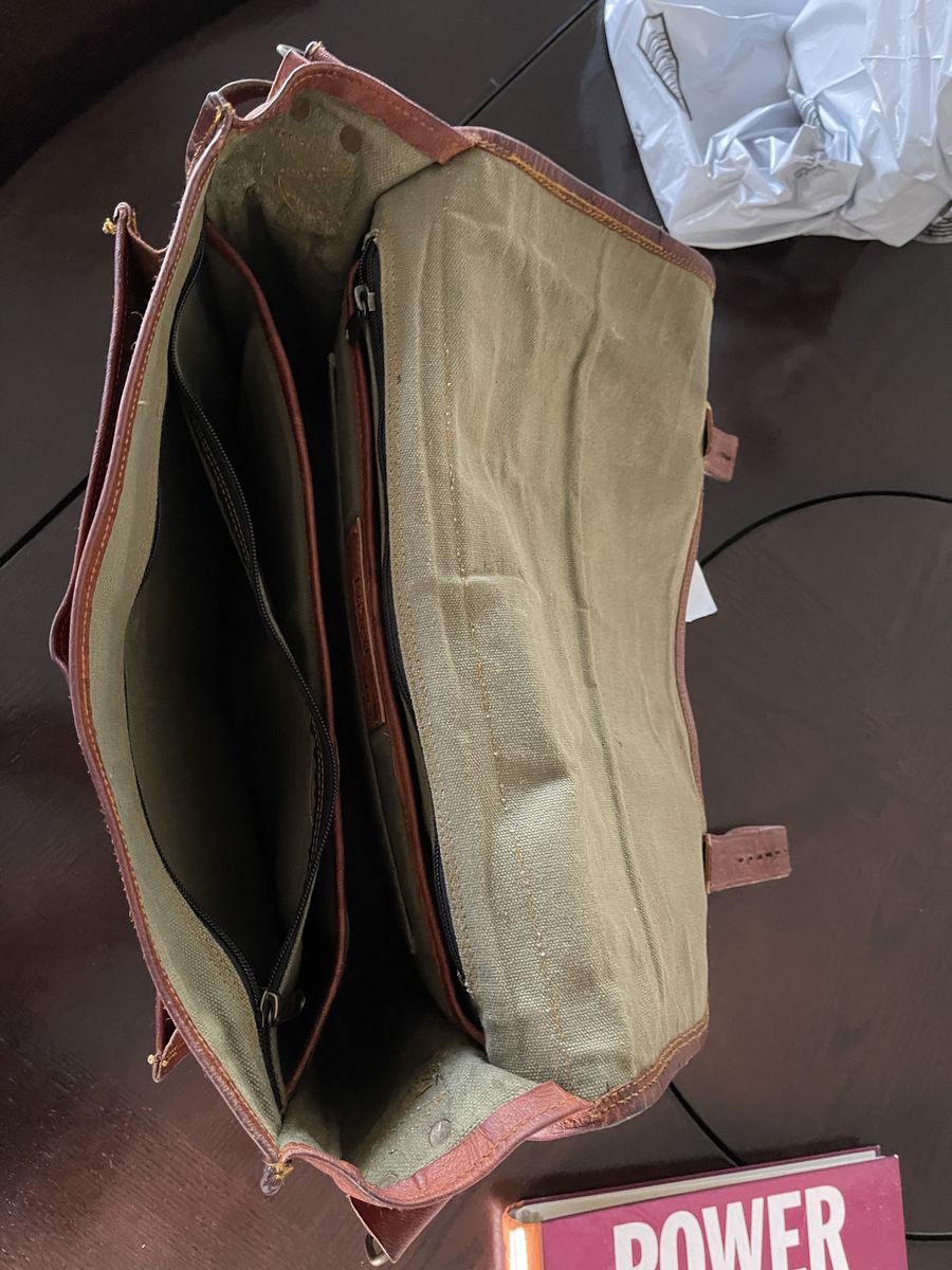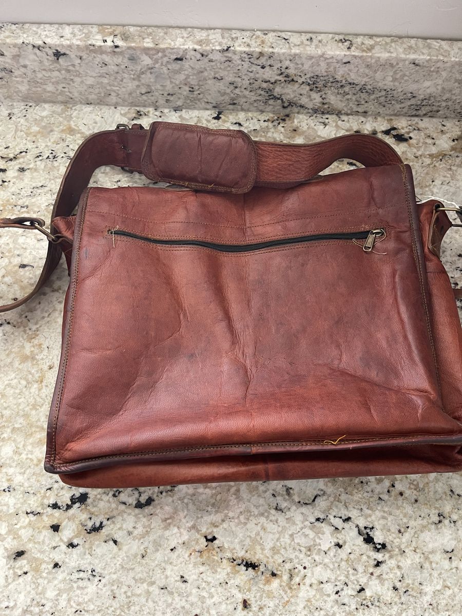 Komal’s Passion buffalo leather briefcase. Classic wide barrister/legal size with many pockets. Excellent little used condition: Oiled, no rips or tears. These sell for new on Amazon in the $70 to $100 range.