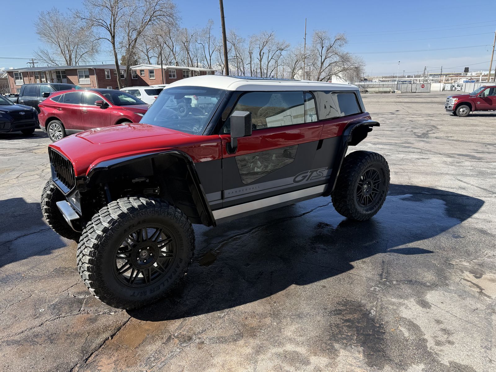 like new and in perfect condition. this is a great machine and catches many eyes. It comes with the 120v and 220v charging cables and only ahs 53 miles on the machine. We purchased it for a possible hunting rig and decided that its too nice and not really set up for what we want to do. Otherwise we would keep it. It is a blast do drive and gets 140 miles on a charge. With 400hp and 35 tires, Ac, Heat, 4 Wheel steer, Crab crawl and many other settings this would be a beast in Moab and the like. Very comfortable ride and a head turner. New these are going to cost 54k+ out the door so this is a great deal for the price. We have the tile in hand and its charged and ready to eat up the hills.