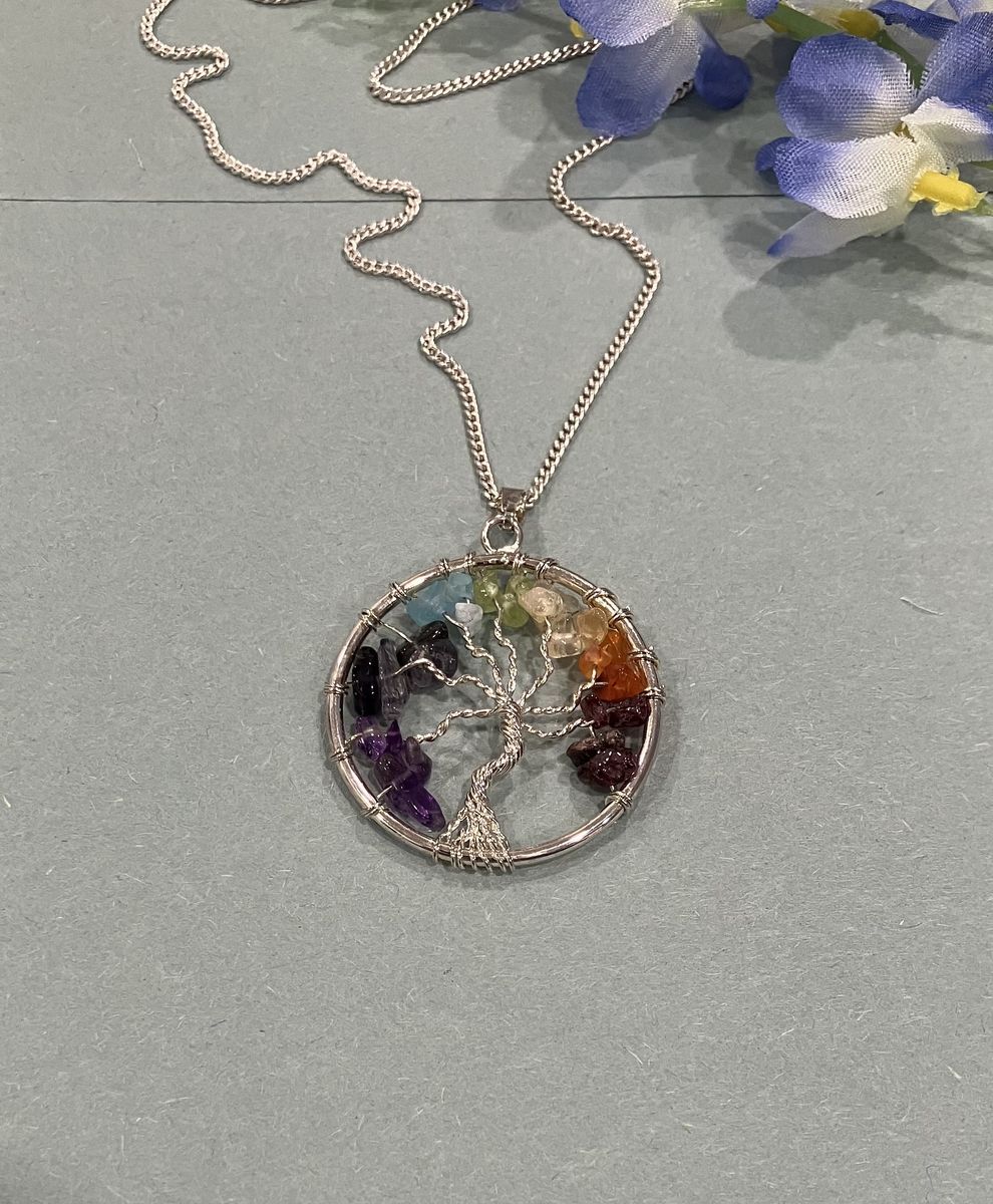 Venmo18 inch stainless steel chain with a 1.25 inch in diameter, silver and multiple gemstone, lovely tree pendant. Gemstones are a mixture of amethyst, and other stones. Gift box included. Local meetup or can mail with ship fee.