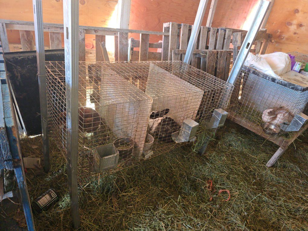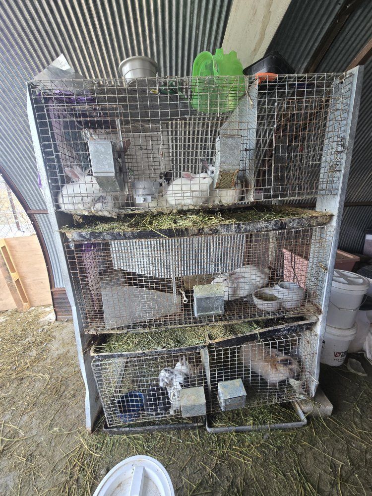 we have few different rabbit cages sizes and incurments some with set 4 some set 2 and some set 3 some have stands some dont cages cant leave unless bunnies get sold lol different prices for cages $40-75 each cage set bunnies ages 6 weeks - year old $20-30 each 20 if get more than 3