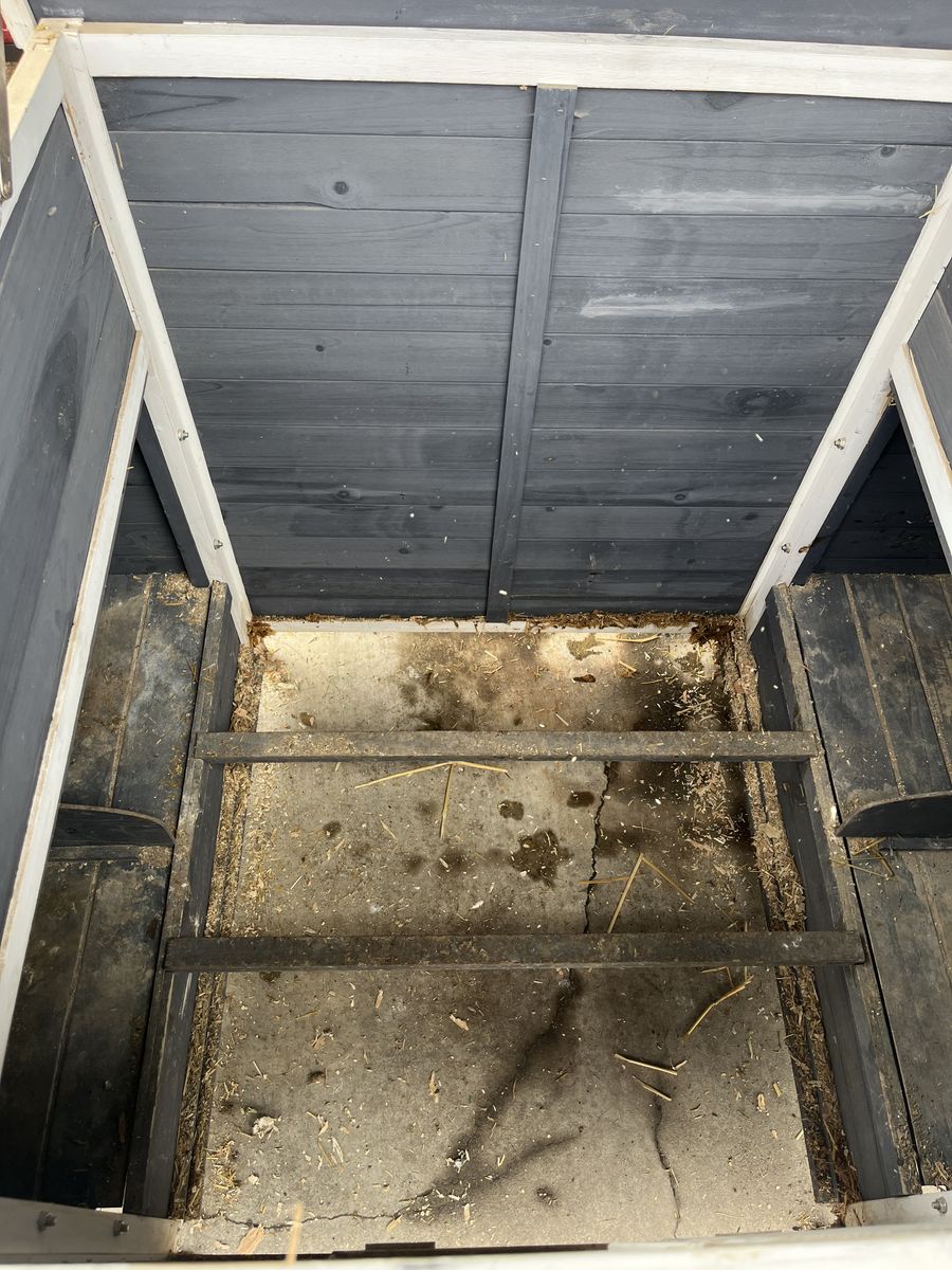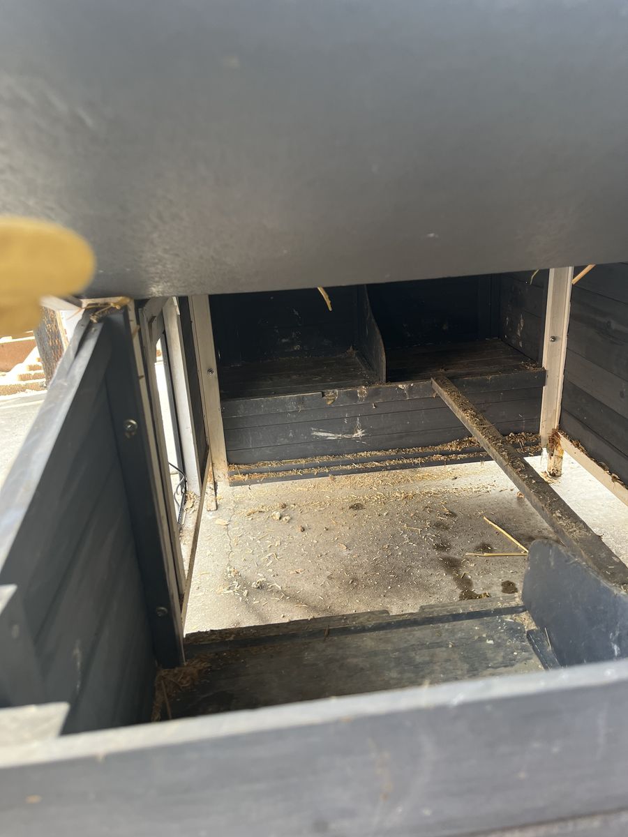 Coop can fit up to 5 chickens. Programmable door to open automatically. Bottom tray pulls out to clean. Great starter coop.