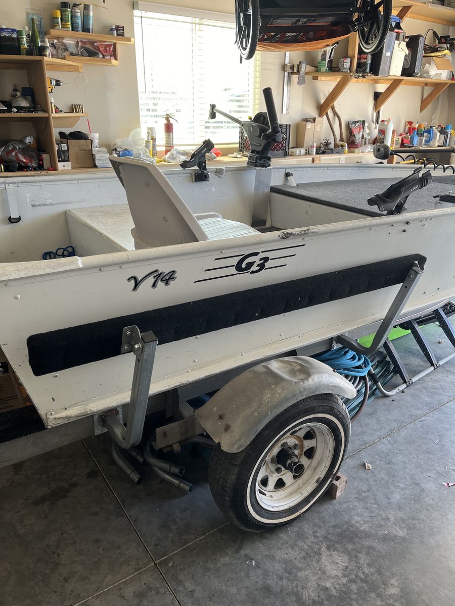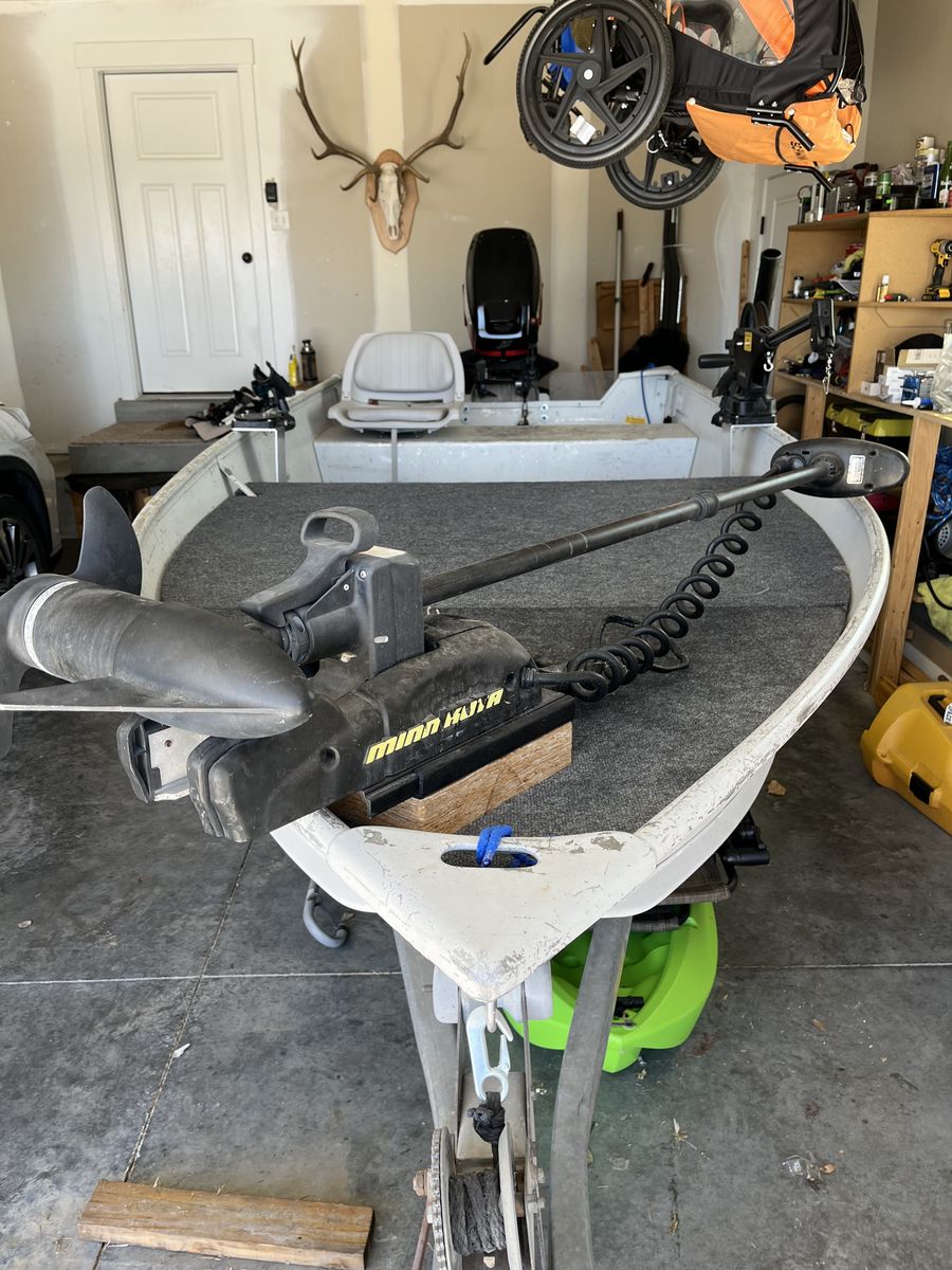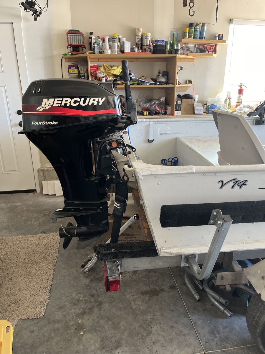 Venmo14 ft aluminum fishing boat with 25 HP mercury big foot motor. 55 lb thrust Minn kota trolling motor, battery, pivoting down rigger mounts and removable decking kit. This is a deep and stable boat it’s just not getting used. Wiling to negotiate, make me an offer