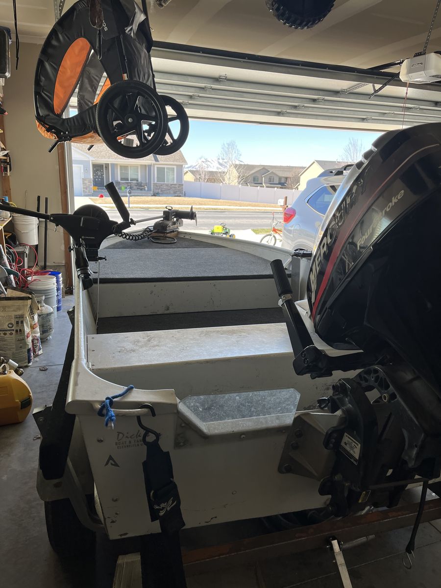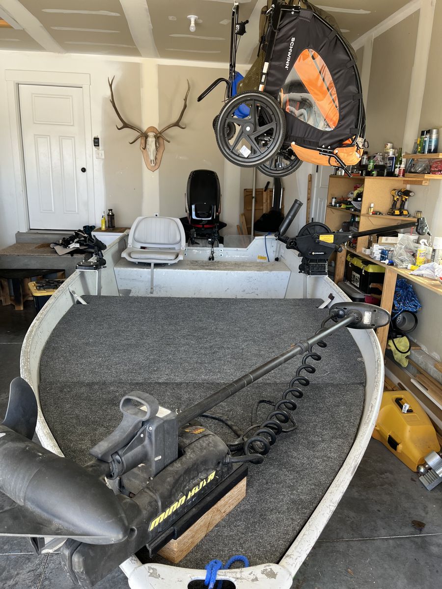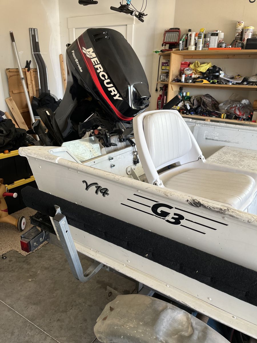 Venmo14 ft aluminum fishing boat with 25 HP mercury big foot motor. 55 lb thrust Minn kota trolling motor, battery, pivoting down rigger mounts and removable decking kit. This is a deep and stable boat it’s just not getting used. Wiling to negotiate, make me an offer