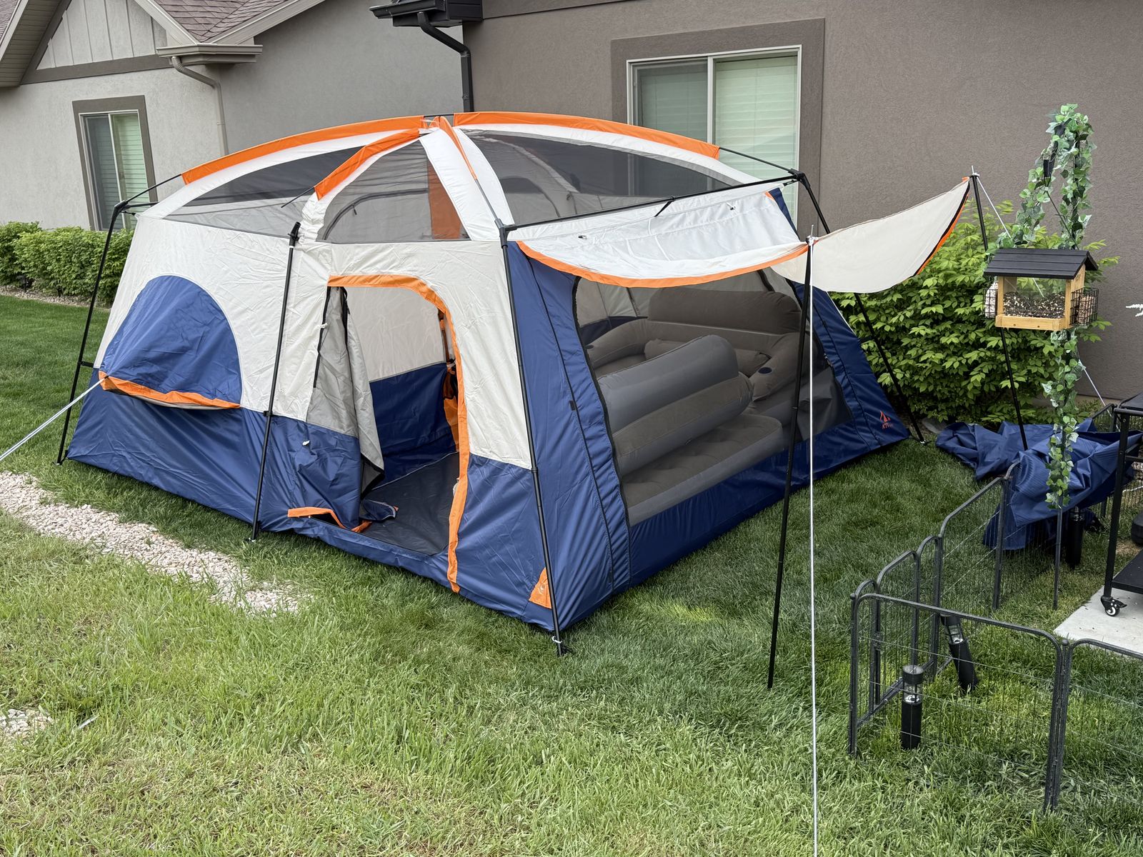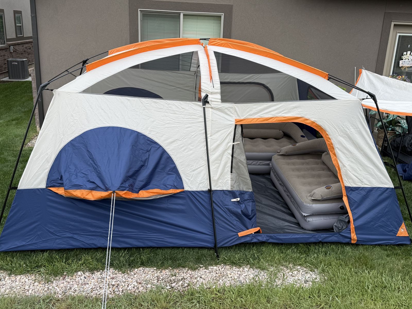 VenmoAlmost time again. Brand new 2 room tent. 2 blow up chairs/couch. Turns into beds. queen air mattress propane stove. Camping mat. Portable bathroom. . Value $500. Asking 120$