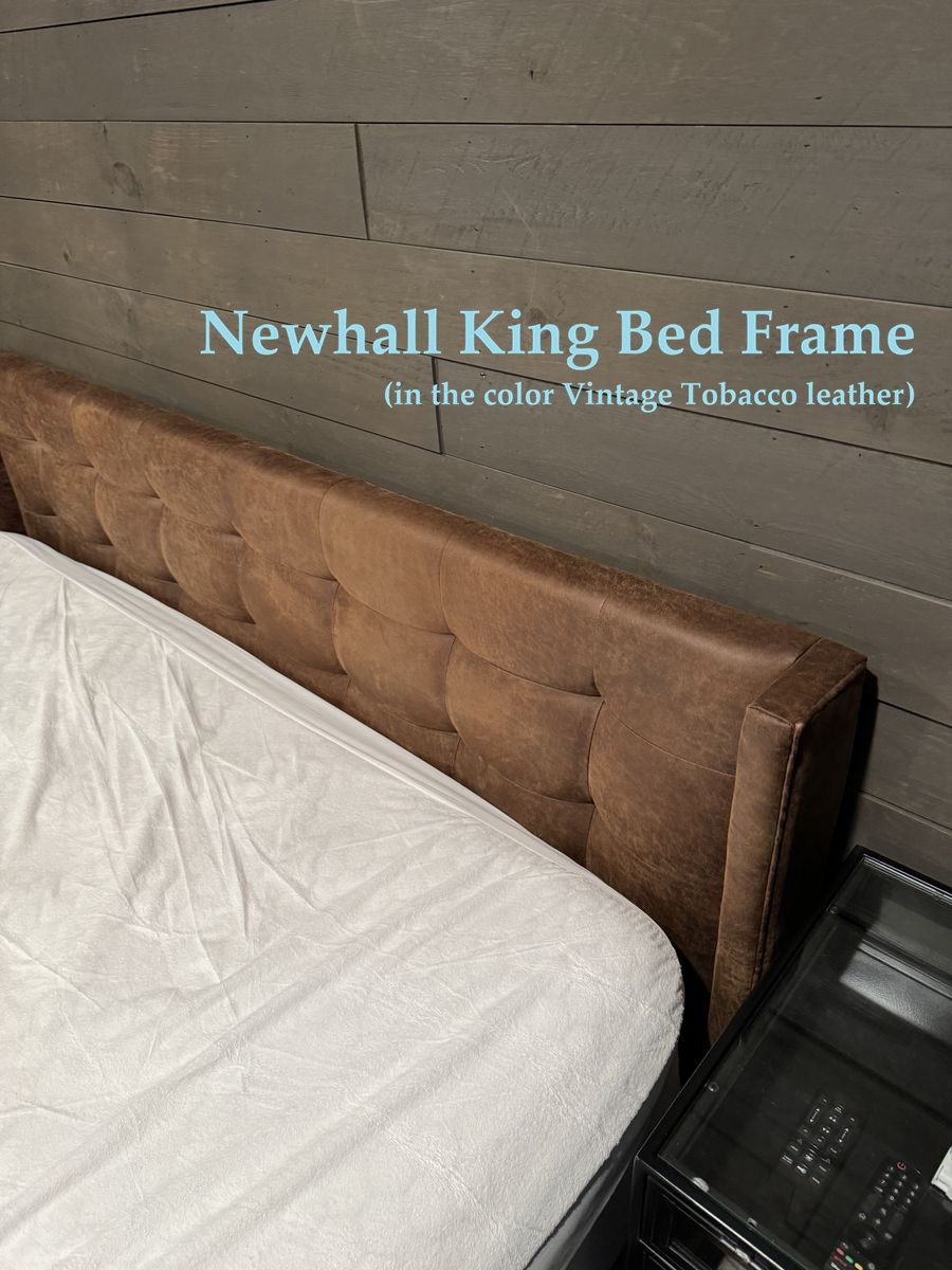 —Four Hands Newhall King Bed Frame (Vintage Tobacco leather) Retail: $1,700+tax Asking $1,200