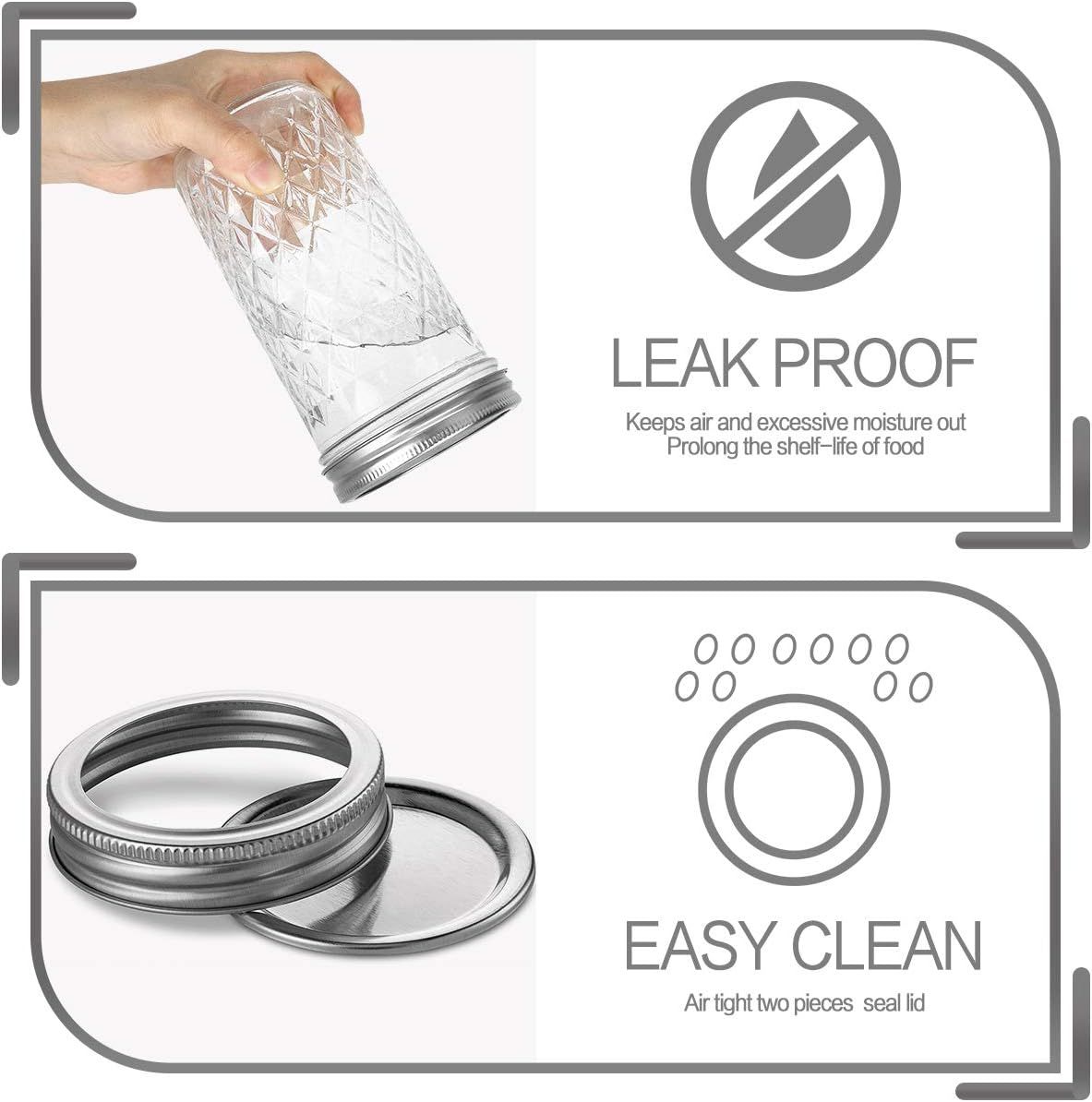 FOOD GRADE:Each Canning jar is made from food grade materials.Great for food storage.Save time and effort with reusable glass jars that keep food flavor and freshness