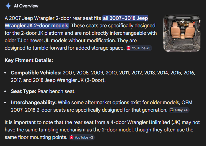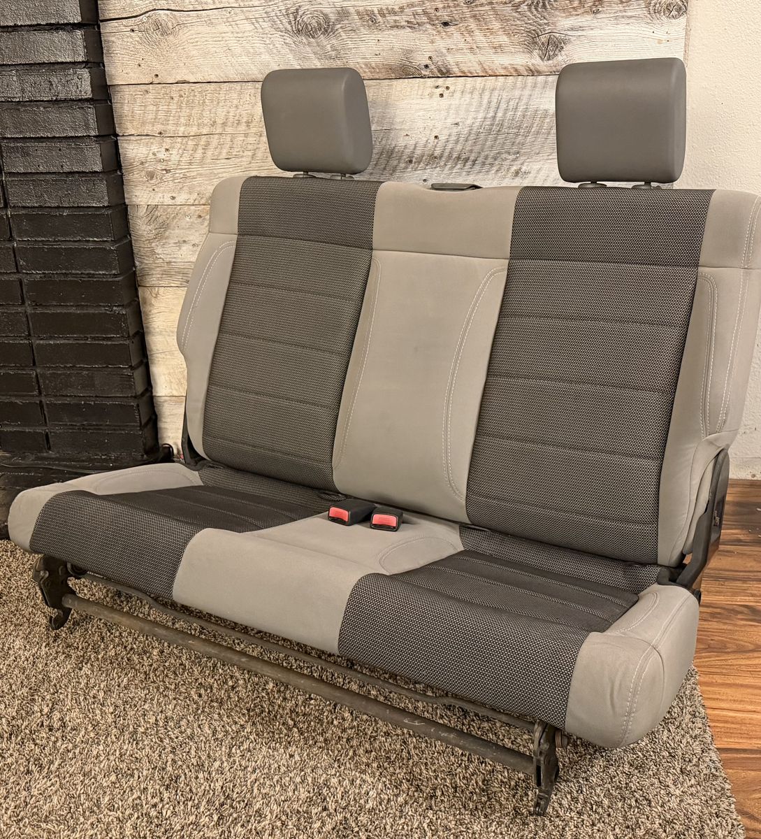 VenmoFactory gray/black cloth rear seat out of a 2007 Jeep Wrangler JK 2 door. The seat is in great condition (as shown in pics). Seat folds, the latch mechanism functions as it should, it has the headrests and both seat belt buckles are attached to the seat. It's from 2007 so it has minor wear as to be expected with anything else from 2007. A quick search said this seat will fit all 2007-2018 Jeep Wrangler JK 2-door models (picture of info included).