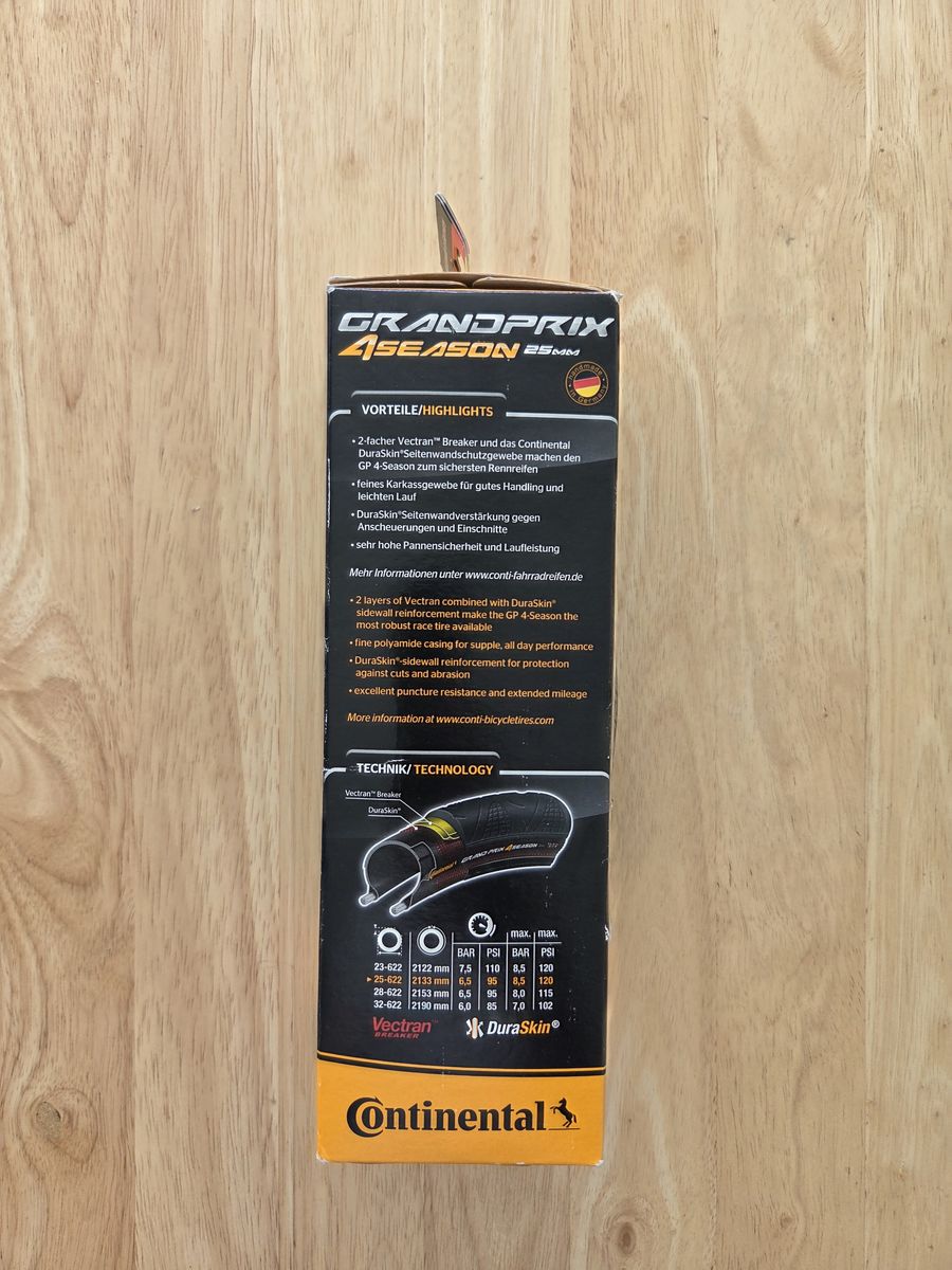 ZelleWhat you see in the photos is exactly what you will be getting, so please study them closely before buying. This item is brand new, and factory sealed. This is my favorite road tire, I just decided to get a new bike with wider tire clearance.