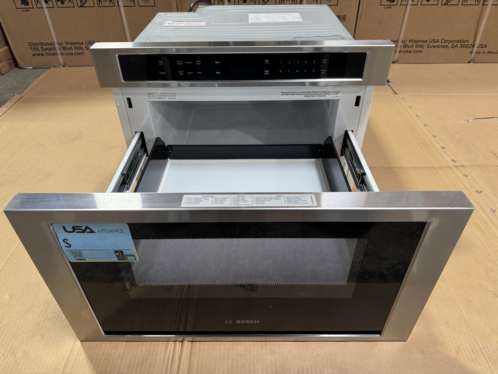 BOSCH 24 Inch 1.2 cu. ft. Built-in Microwave Drawer with Sensor, Automatic Defrost, Glass Touch Controls, 1.2 Cu. Ft. Oven Capacity, 950 Cooking Watts, Child Safety Lock and Interior Oven Light