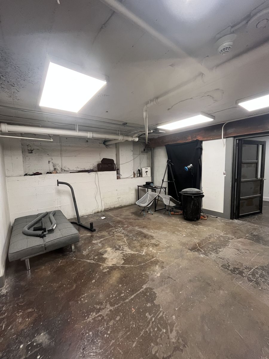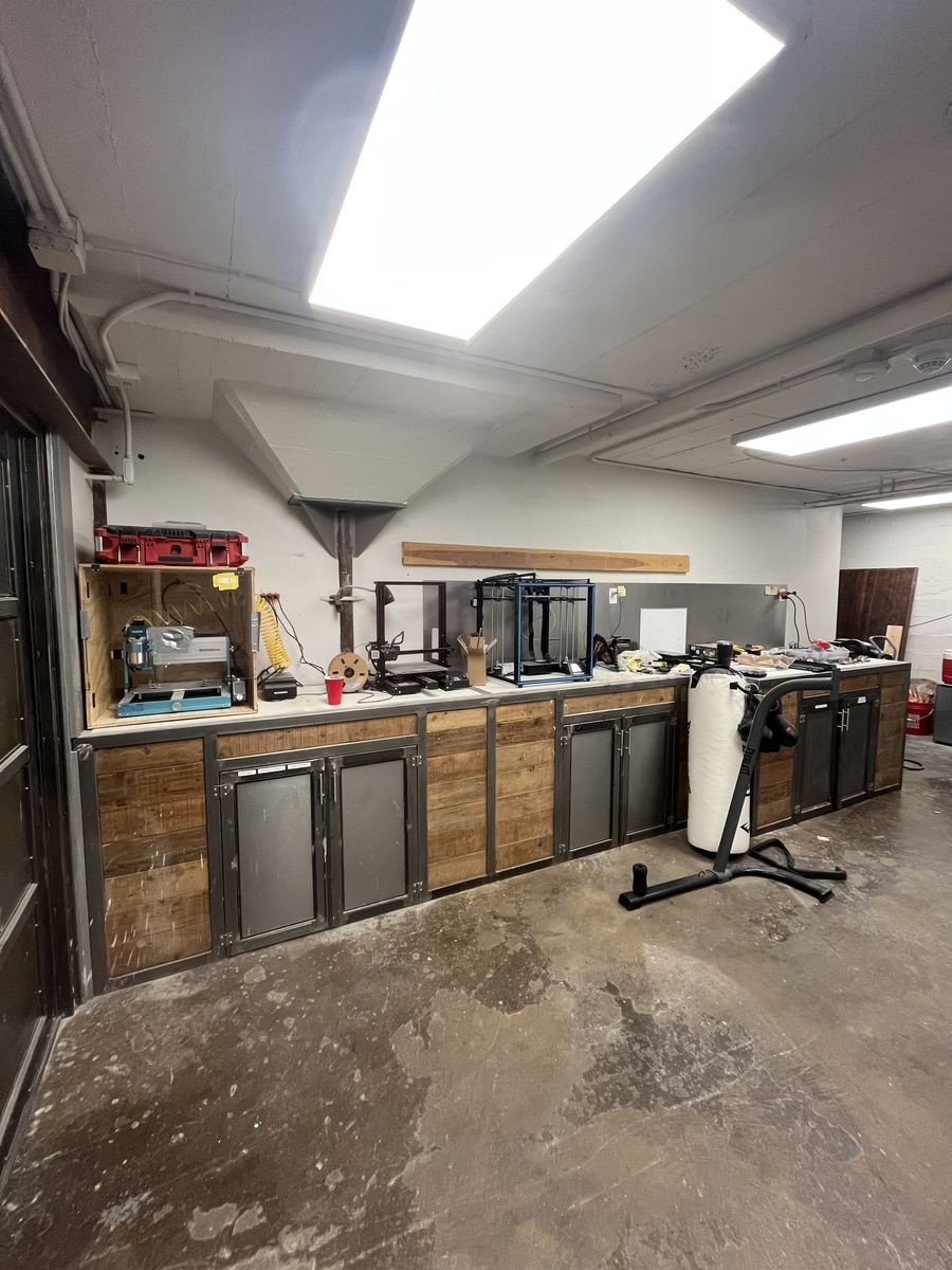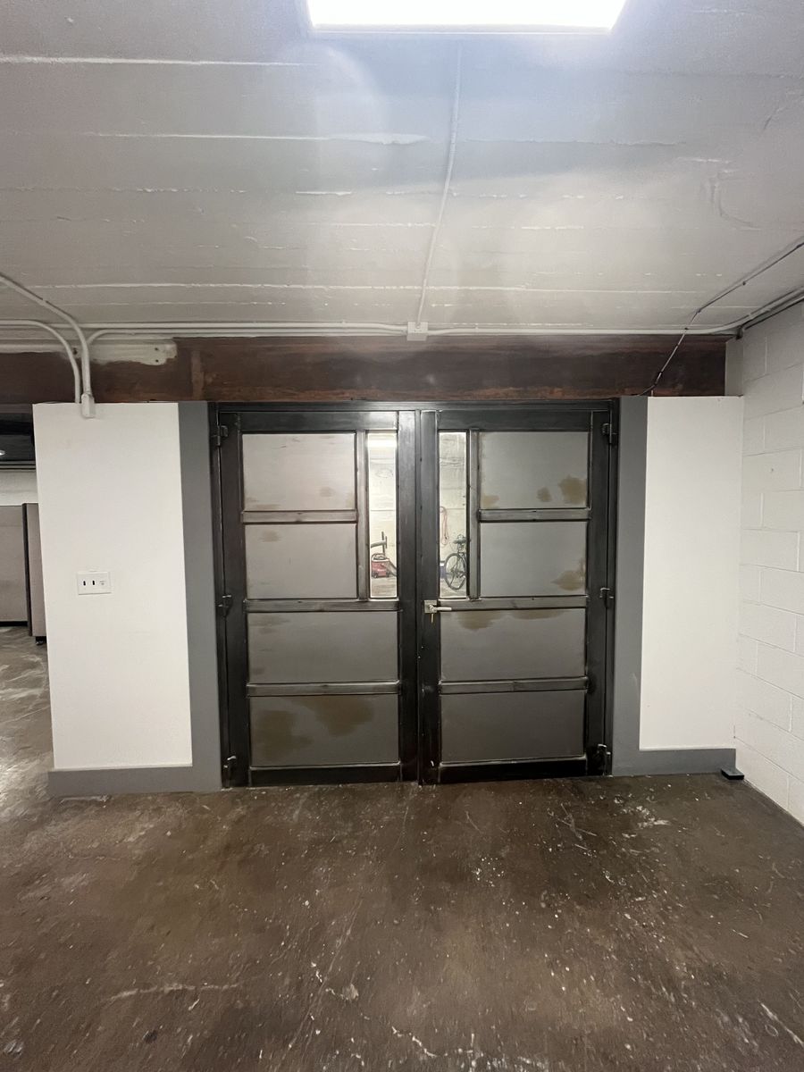Comes with a built in workbench, custom steel double door, ramp access, 220v power. lots of storage, shared bathrooms, free internet. Please let me know if you would like more info or a tour!