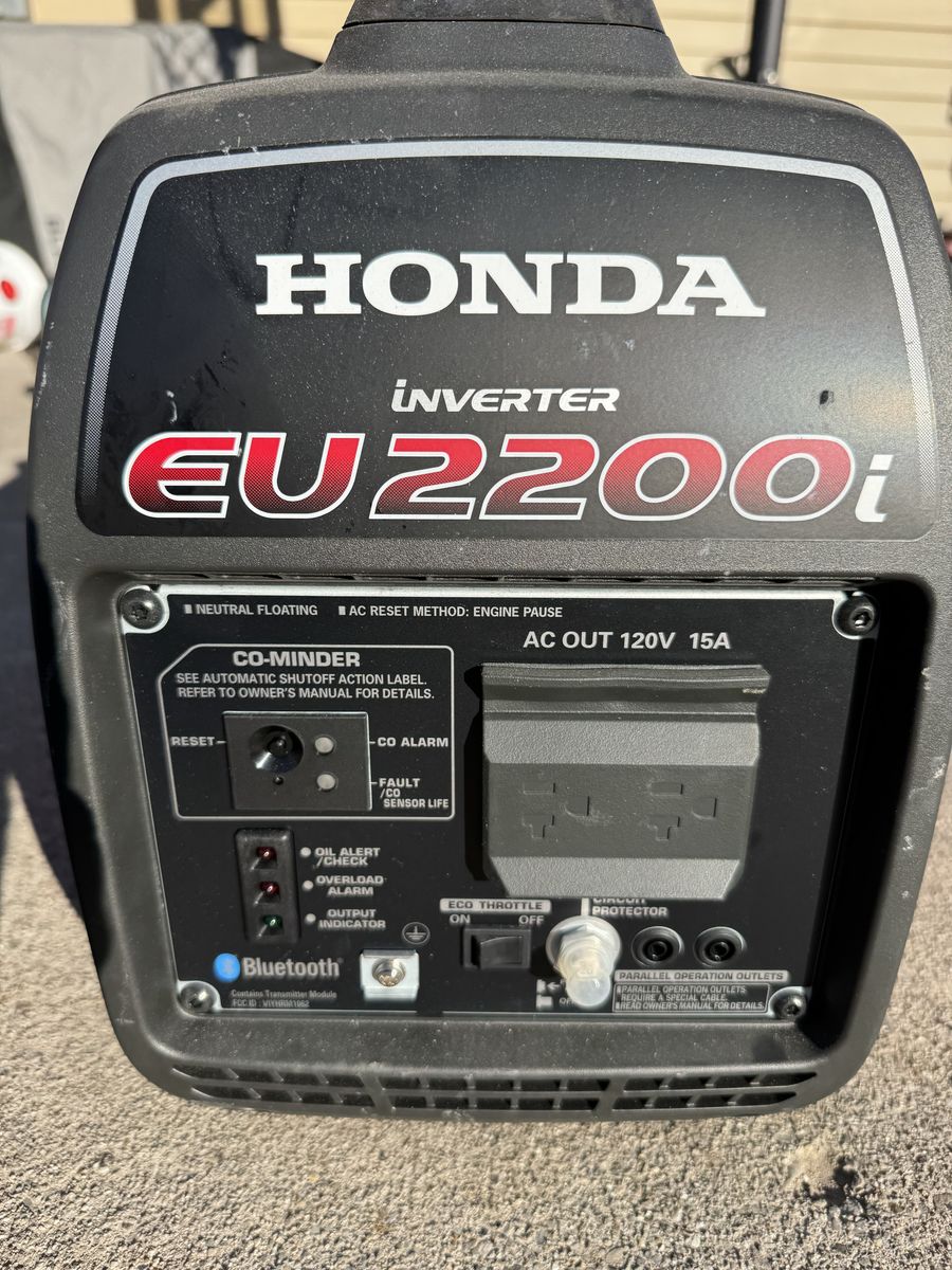 Key features (all shown in photos): • 2200W surge / 1800W rated – perfect for home backup, RV, camping, tailgating, or power tools • Legendary Honda reliability + super-quiet inverter technology • CO-Minder automatic safety shutdown • Bluetooth connectivity for easy monitoring • Eco-Throttle for better fuel efficiency & longer run time • Parallel-ready (link two together for more power) • All alarms & protections: oil alert, overload, etc.