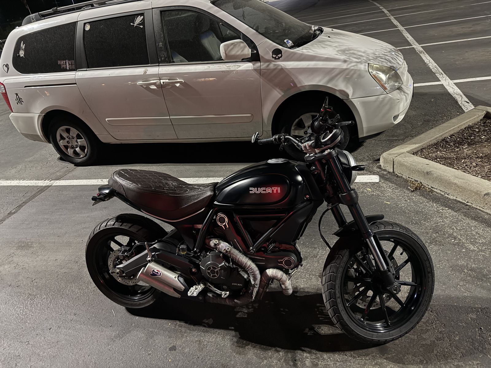 This 803cc L-Twin with 15k miles will leave you smiling with its powerful low end torque. From the upright seating position that makes commuting comfortable, to the Termignoni exhaust amplifying the classic Ducati growl, you’ll never want to get off of it.