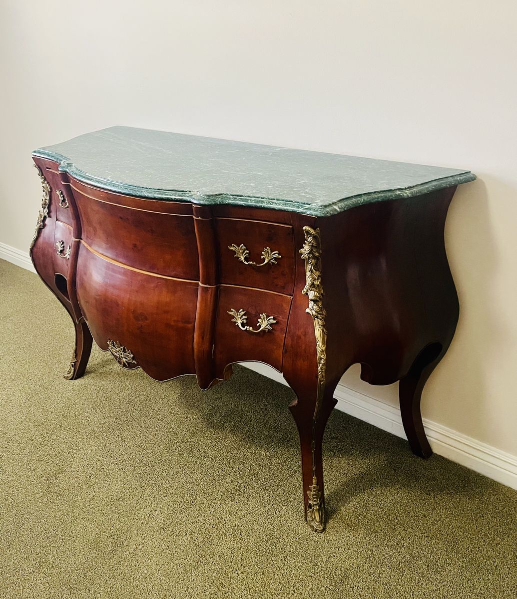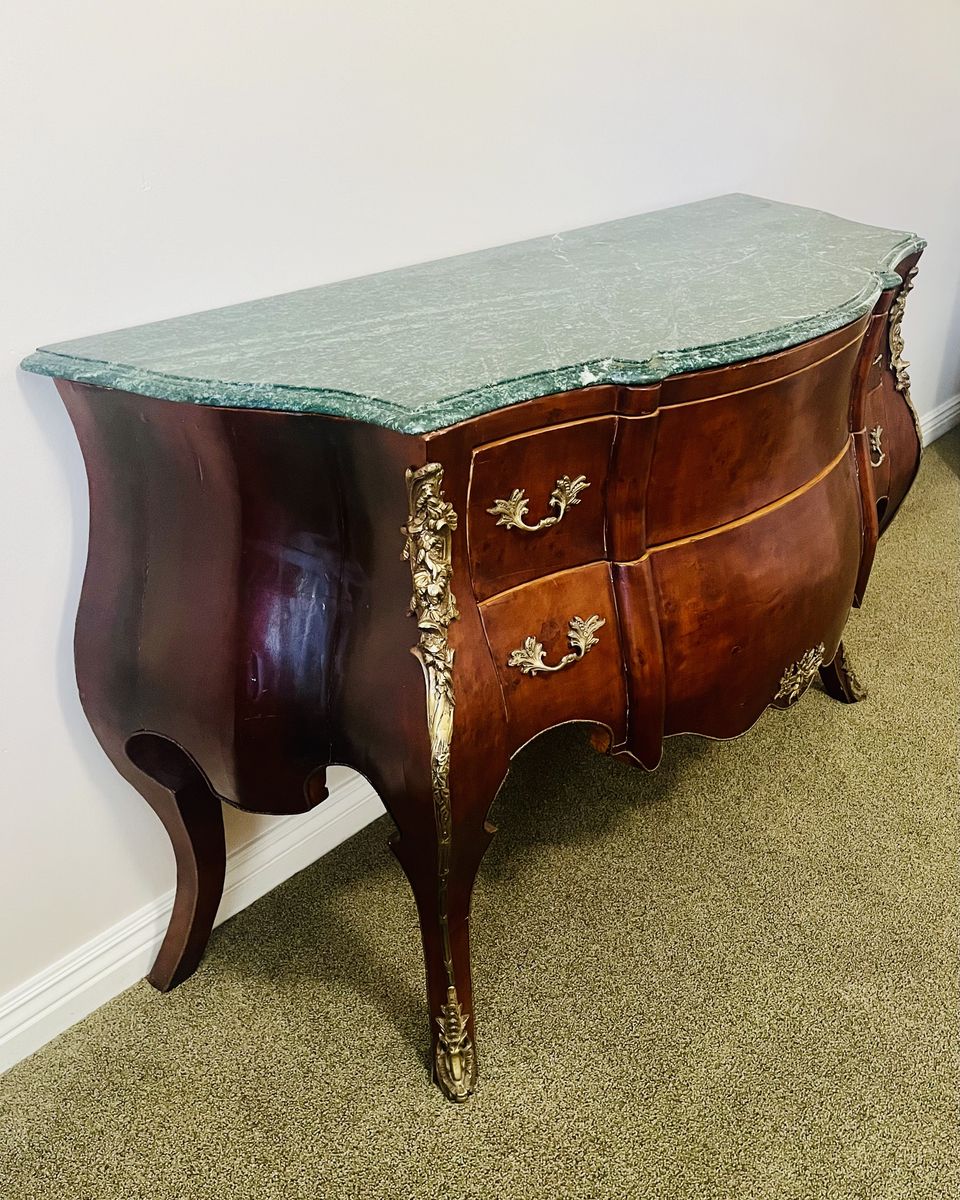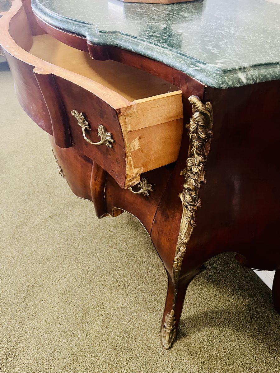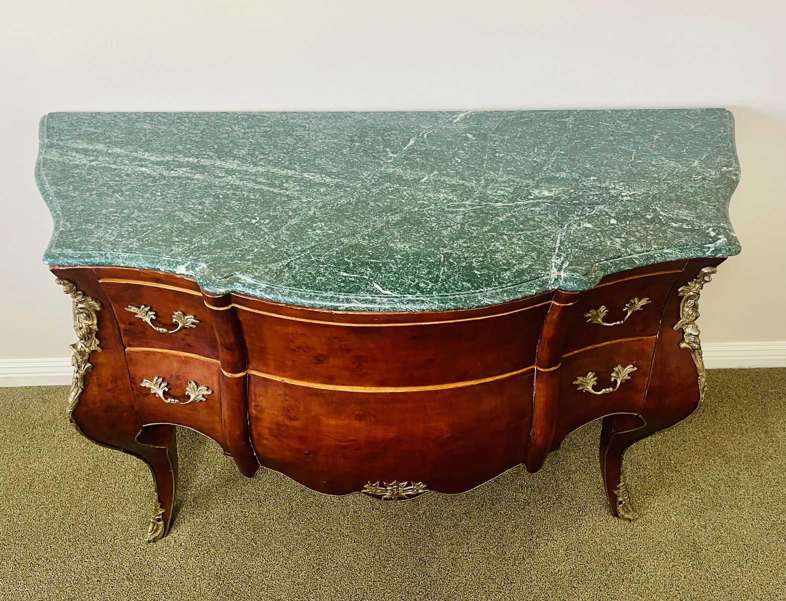 BEAUTIFUL GREEN VERDE MARBLE TOP AND WALNUT VENEER