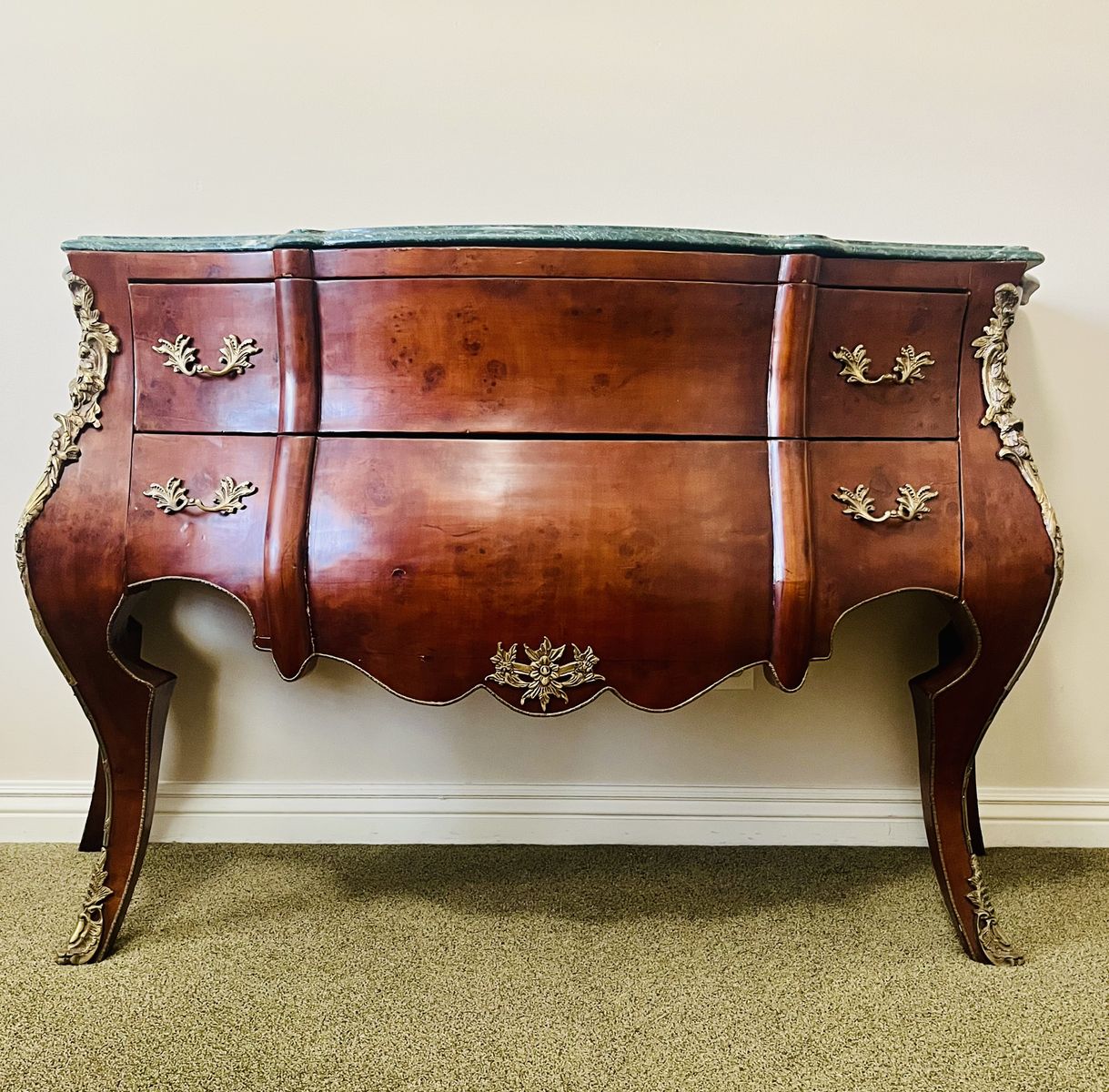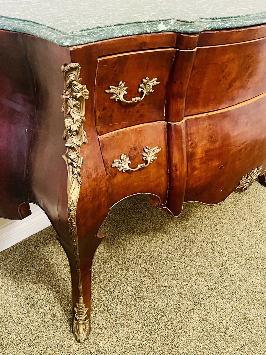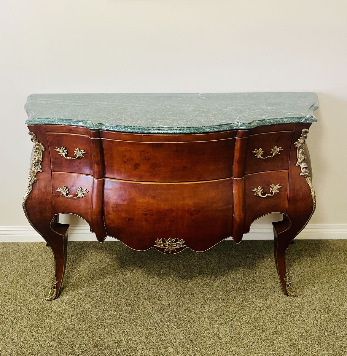 BEAUTIFUL GREEN VERDE MARBLE TOP AND WALNUT VENEER