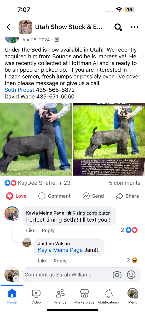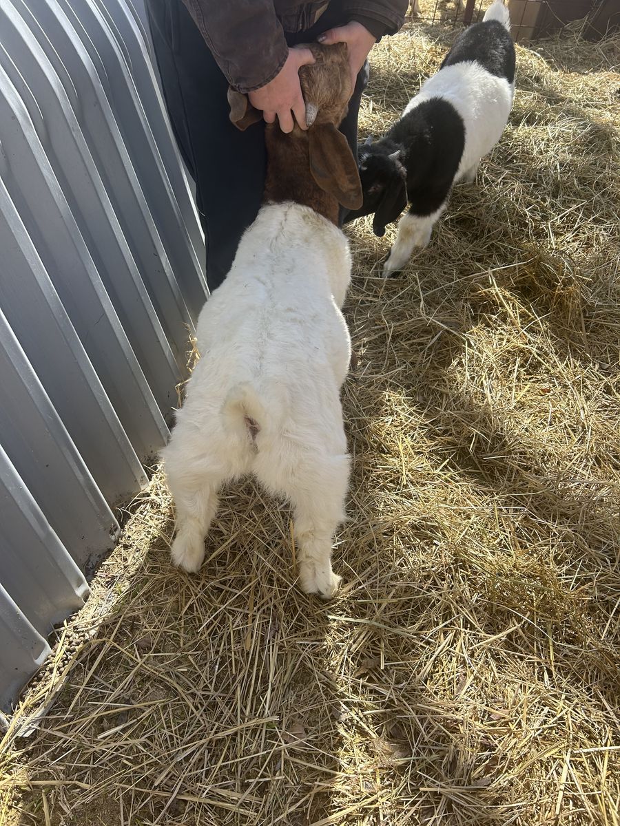 October born buck for sale can be banded if you want a wether. His dad is out of the black buck Under the Bed. Show him as a wether or keep him as a buck.