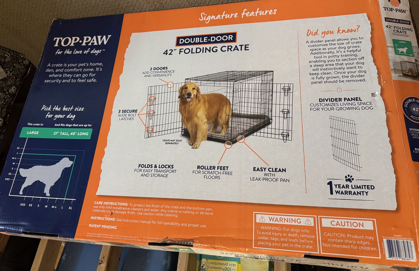 ApplePayTop Paw 42” L folding dog crate.