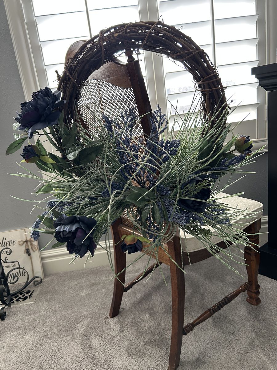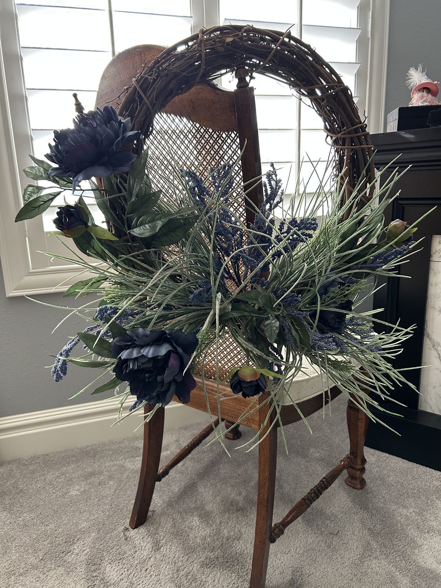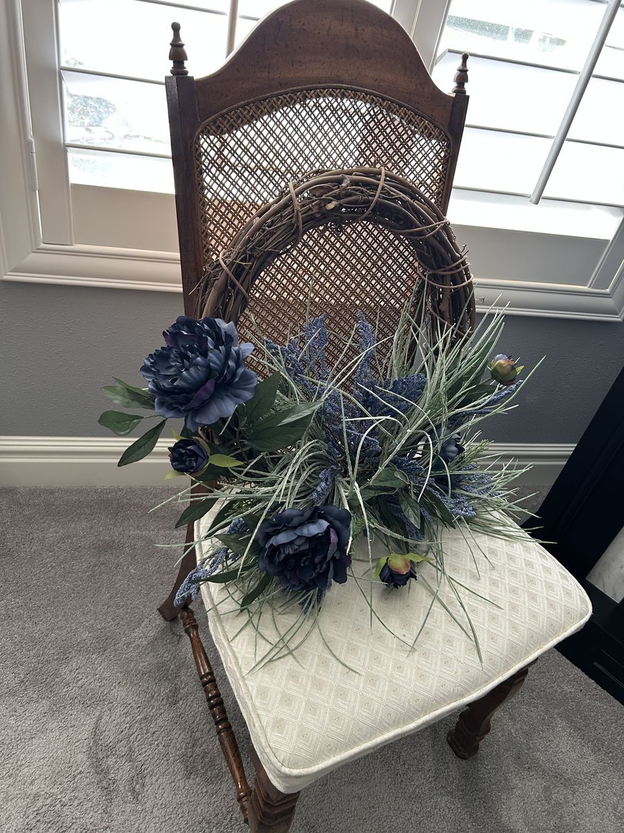 Unique, deep blue artificial flowers on an 18 inch vine base. For indoors or outdoors.