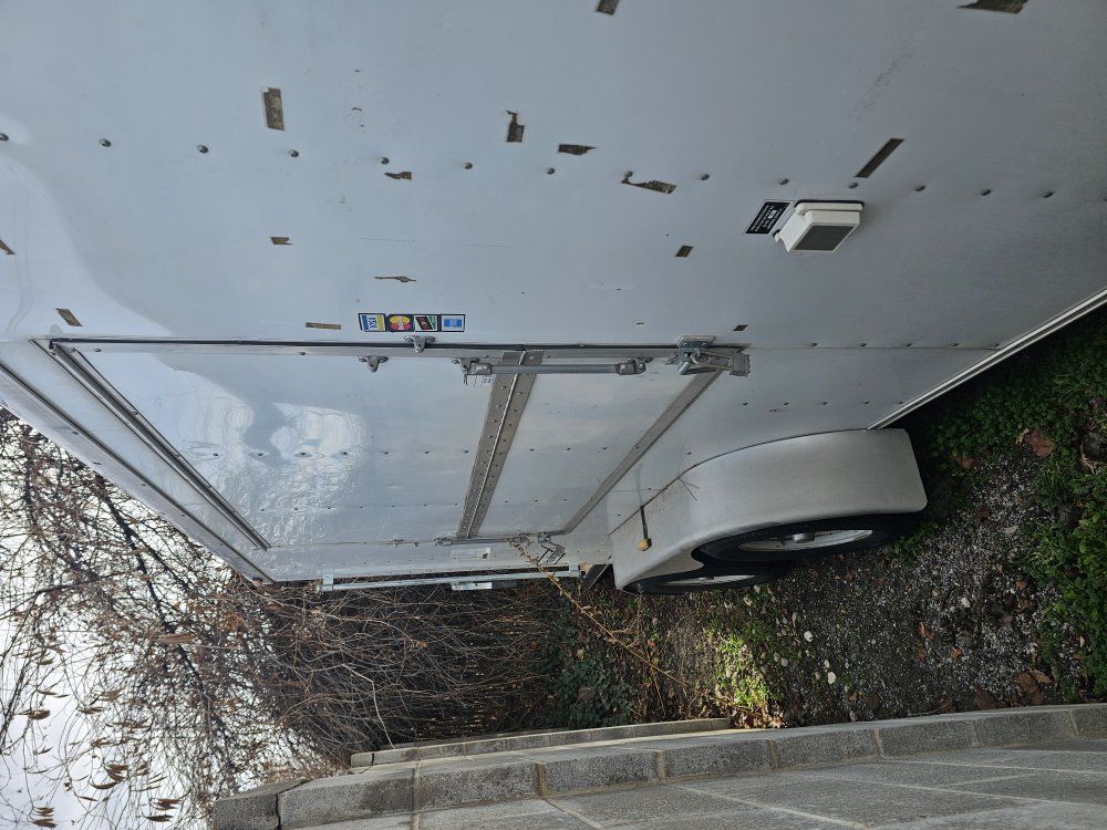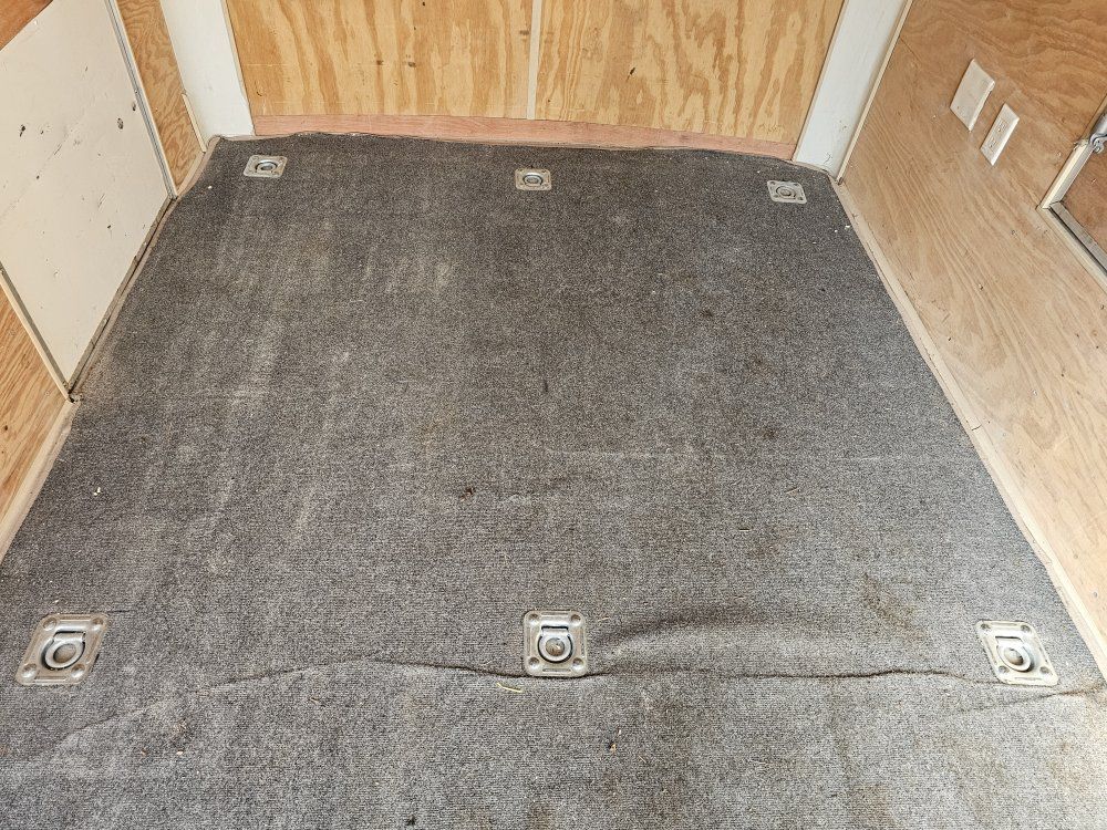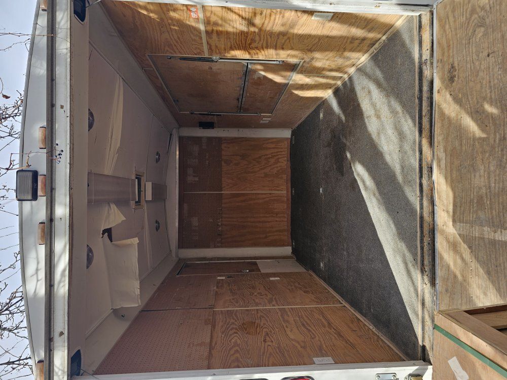 ZelleThis is a used Haulmark 7ft by 12ft cargo trailers. Dual Axel. It has a ramp in the back, a man door on one side,n and a window on the other side. It is also wired for lights and has tie down hooks in the floor which is great for motorcycles. Tires are like 3 years old and in good shape. lights and brakes work like they're supposed to.