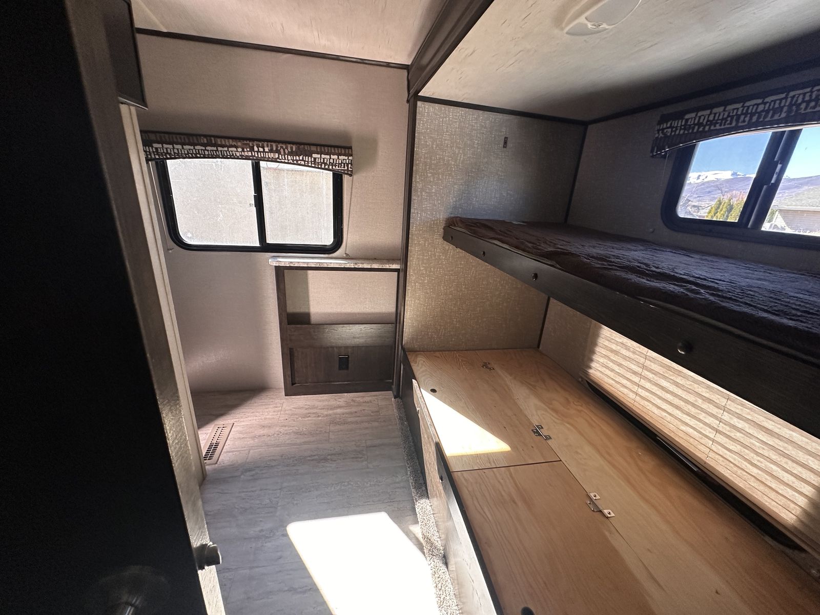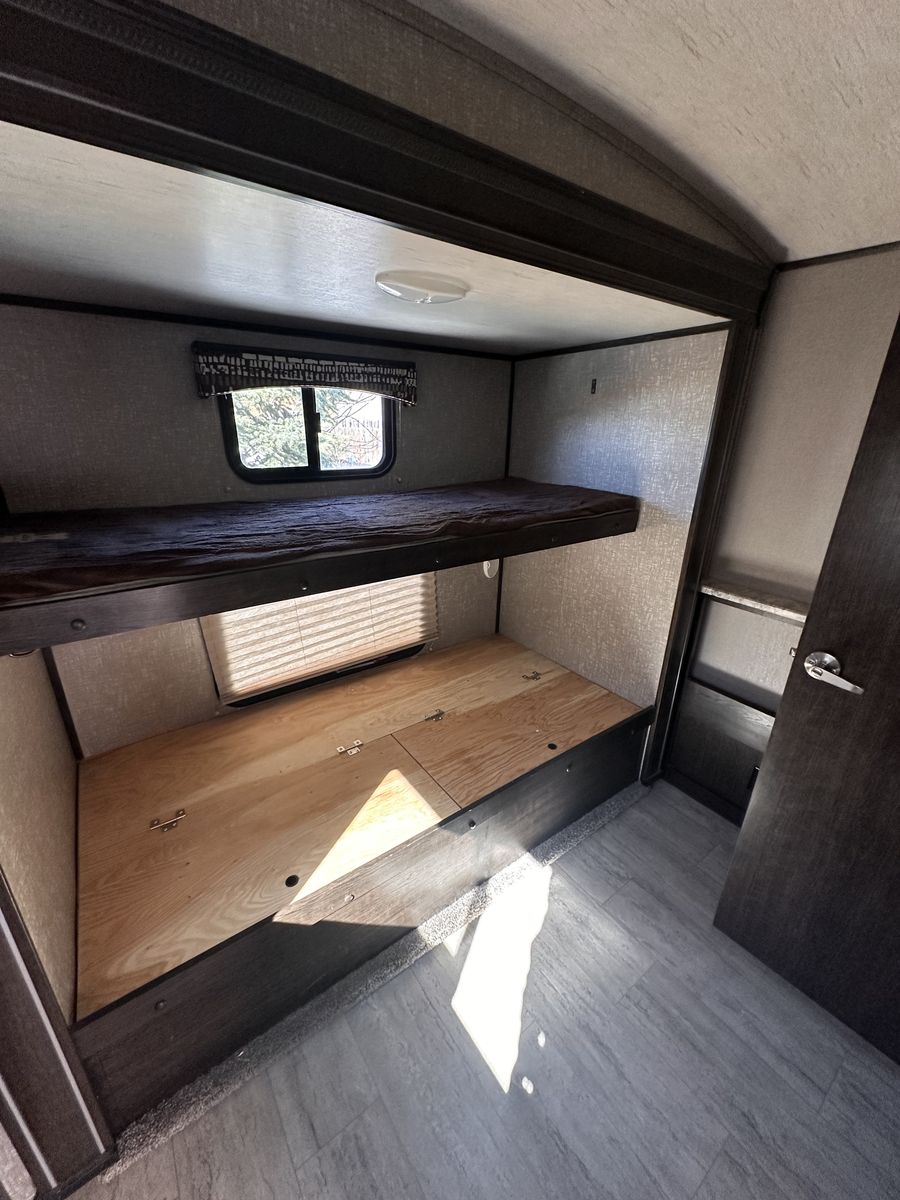 Shadow cruiser 2018 by Cruiser RVs Model : 289 RBS Comes with 2 bed rooms and 1.5 bathrooms (large shower)! Sleeps 7 people Queen size bed and bunk beds along with pull out couch and table that changes into bed 2 slide outs thar make a spacious area 2 TVs Winterized Tons of storage under the trailer and inside Great condition and well maintained (brand new door, AC filters, etc) Full propane tanks/heating Large sink and fridge Nice Large awning for the summer Easy to use and understand Comes with solar panels for off grid camping