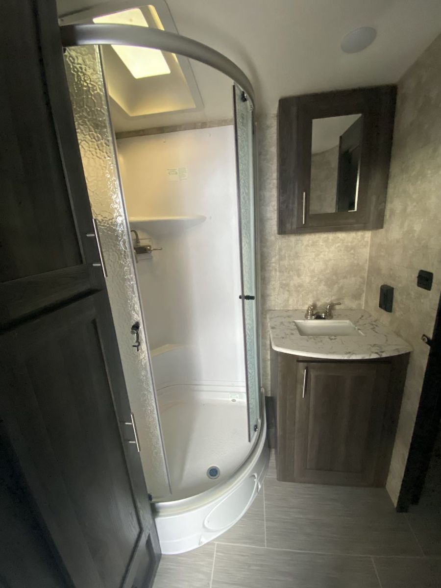 This layout is extremely popular for couples but comfortably sleeps up to 5. With the added solar and lithium system, this unit stands out from others on the market.