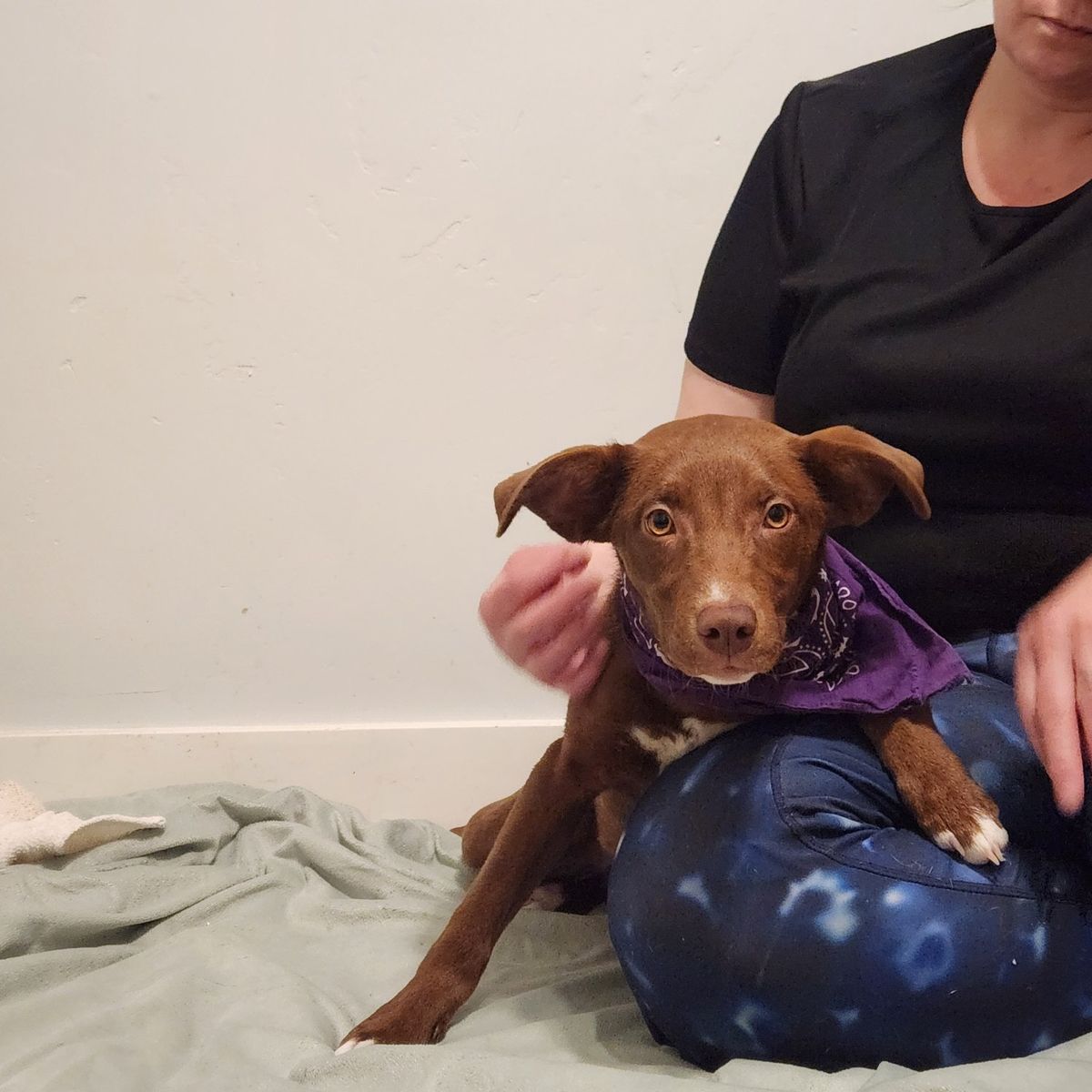 Fern and Stark are ready for adoption! Rescue Rovers presents: Fern, a beaitiful female Visla (Hungarian Pointer) mix. She was found stuck in a fence next to a shelter and brought to Utah. She was terrified initially, but quickly adopted her foster mom and, after only week, she loves everyone in the family; including all the other fur-babies. She has amazing instincts and would thrive as a hunting or agility dog, but definitely needs lots of exercise and enrichment to match her intelligence and curiosity. •3-4 months old •spayed, vacc up to date •housetrained (mostly), crate trained, and knows "sit" (after only 2 days of work) •good with dogs, cats, and kids with slow introduction (she chased our cat around for a week, but now only has staring contests) •scared of big goats and will gleefully chase chickens, ducks, and rabbits She is still scared with meeting new people and will bark until she accepts them as safe. She still has her puppy excitement and will jump and sometimes snap like she is playing with another puppy. She will also stretch out next to you for a nap and follow her person to the end of the earth.