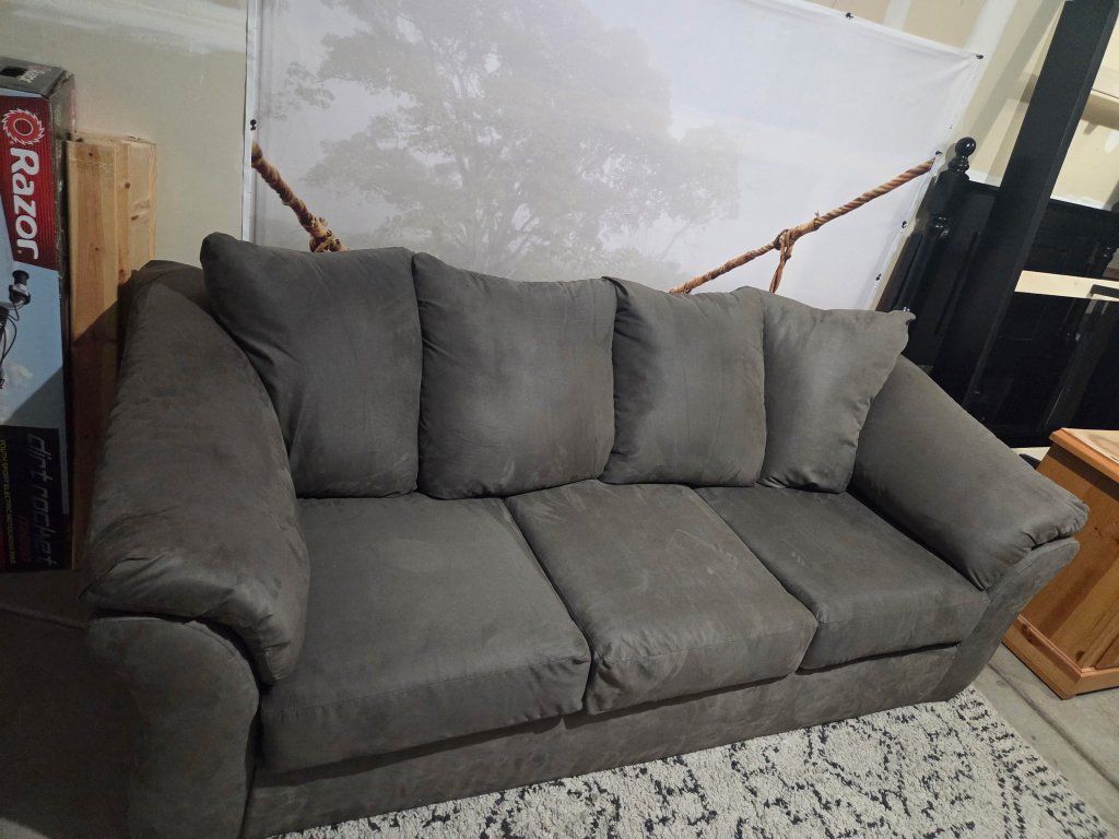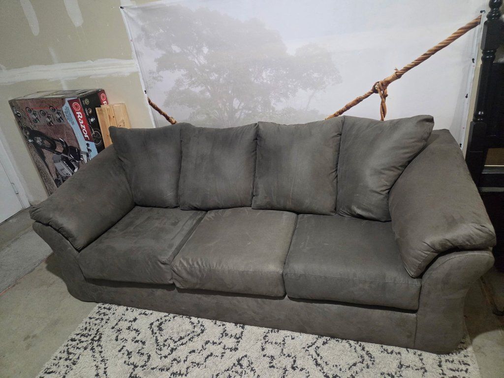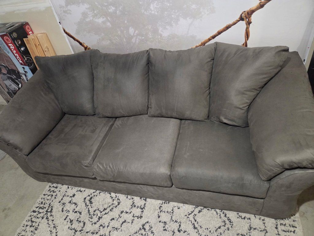 VenmoGrey microfiber couch in good condition. Fcfs. Cash or Venmo only. 56W X 38D X 33H.