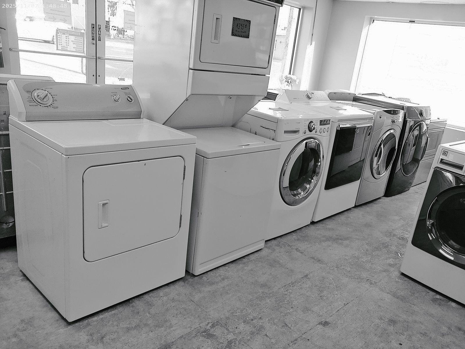 WE have many Electric Dryers to choose from including stackables. All have been thoroughly tested with clothes, serviced, ready to go. Prices start at $165 and go up from there.