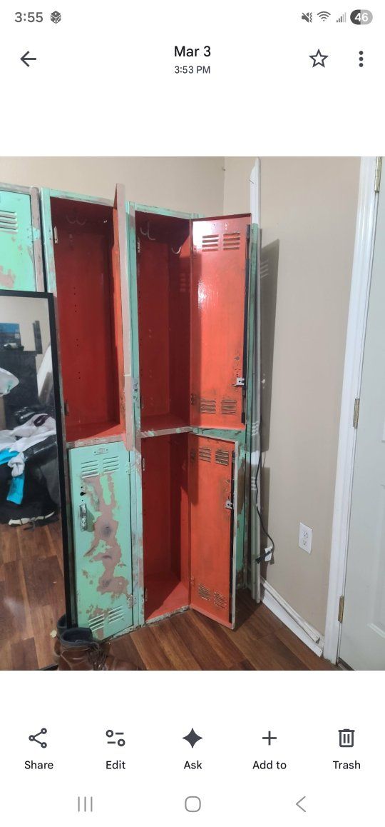 VenmoTwo matching sets of solid steel industrial lockers for sale, 12 lockers total. Each set measures 72" tall × 72" wide × 12" deep and includes 6 lockers (3 over 3 configuration). The exterior paint has been scraped for a rustic / industrial look that works great in homes, garages, shops, mudrooms, or commercial spaces. These are heavy-duty and in great working condition. All doors open and close properly. One set has been painted inside.