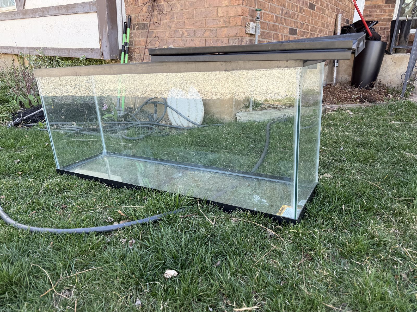 48 long 21 tall 12.5 deep Used it for a hatchling tortoise, she’s outgrown it