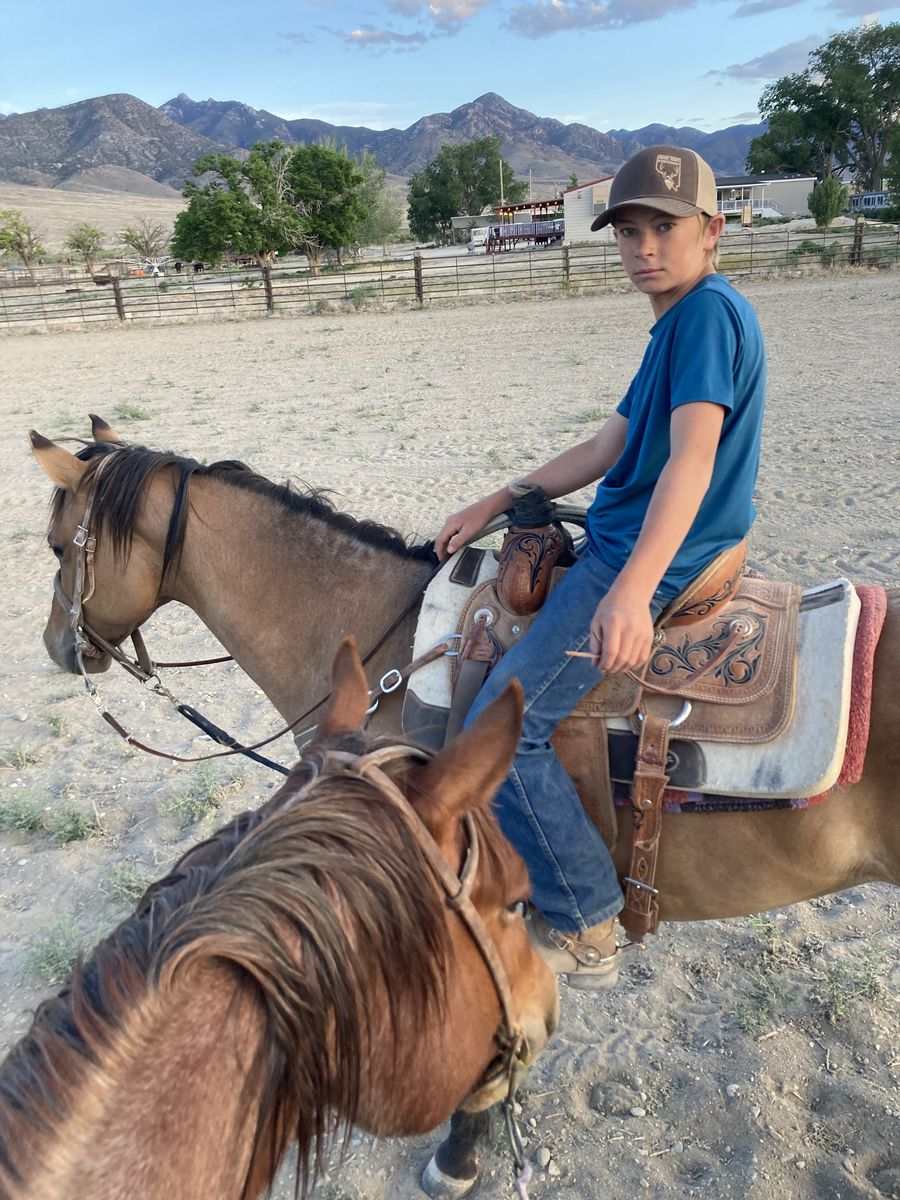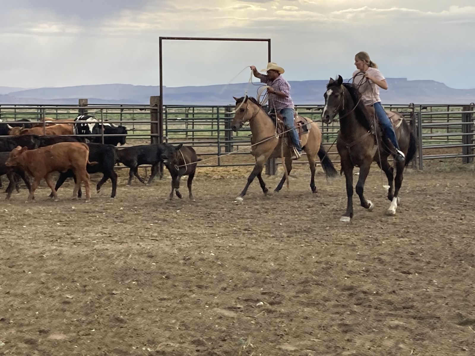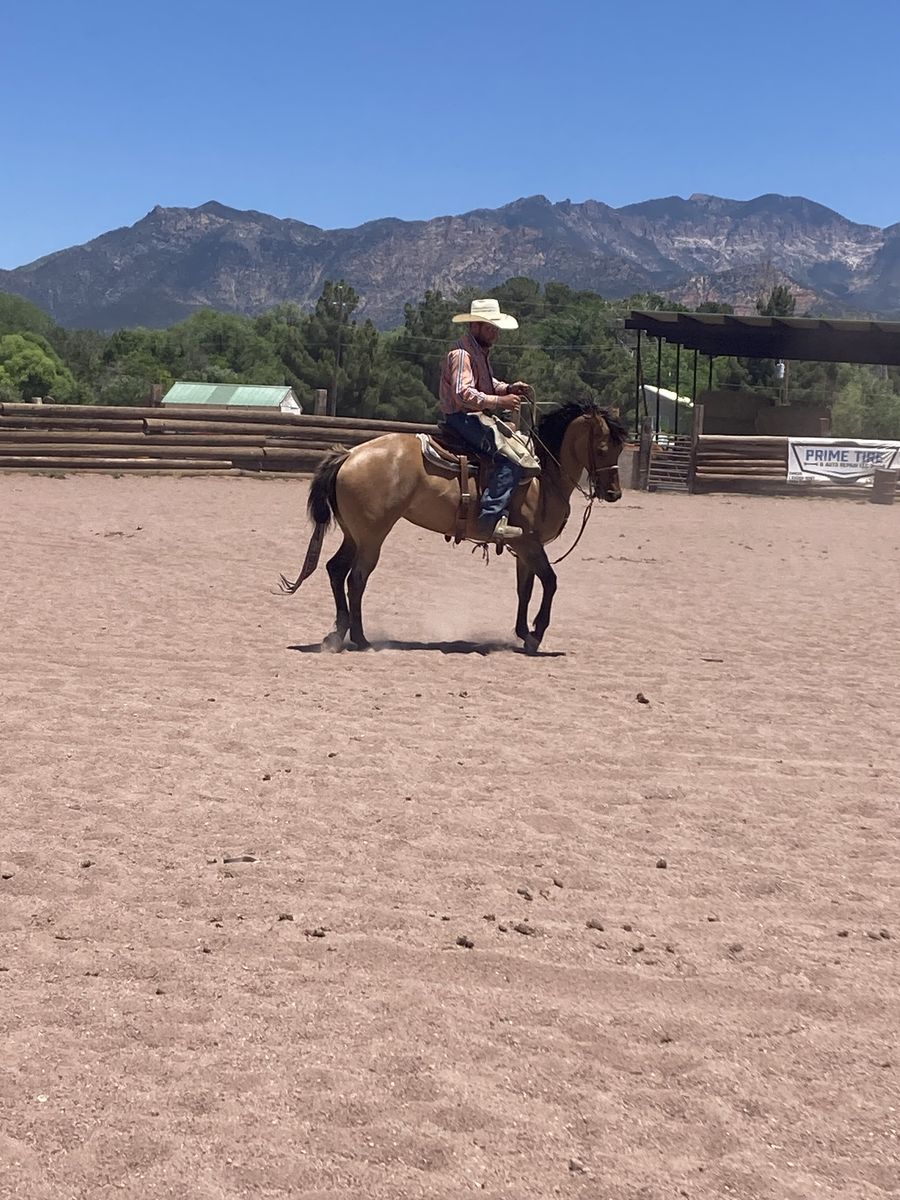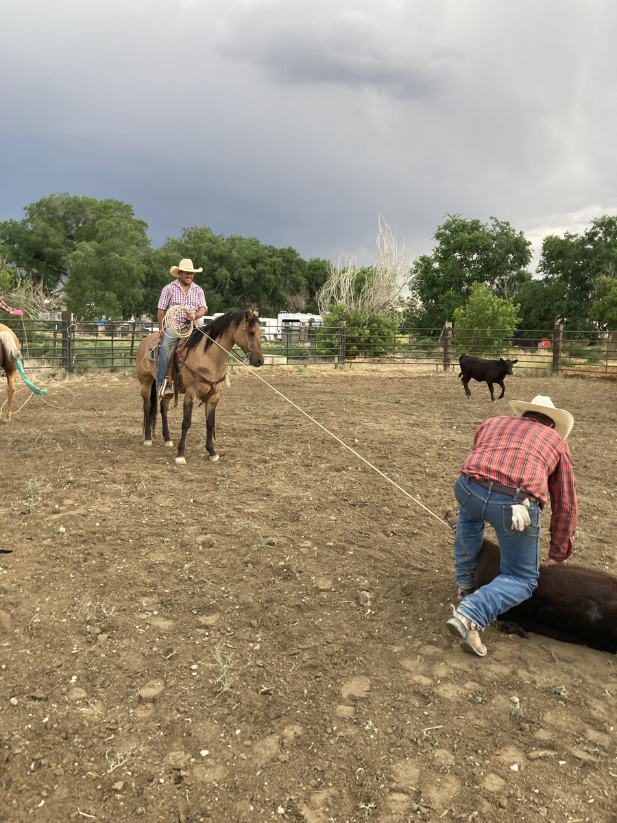 15h started roping on both ends more a heel horse type. hauls and stalls good has been hauled to jr rodeos for a season. Branded once and she's been used to gather and work cows. Good outside and in the arena. She gets nervous sorting pairs. shes sensitive so I won't say a beginners horse. Lyndsey has been rode by handier young kids on up. She's a little short strided to be your first pick for cowboy work. Im short on corral space and need a head horse for kids so offering her for sale. Has been on the barrel and pole pattern and flag races. we played on goats but not much. Would make a jam up break away and goat horse.