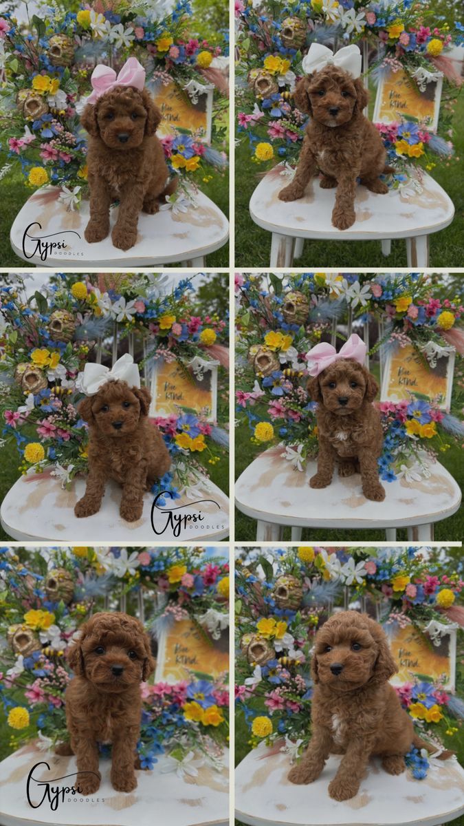 Peanut is our perfect, proven, solid red F1b Cavapoo stud, weighing in at 7lbs of pure love. He’s a total sweetheart and a true gentleman—his calm, affectionate nature makes him the perfect companion, especially at the corporate office where he spends his days quietly by his human mama’s feet. He’s the office mascot! :) He’s playful, smart, incredibly gentle with kids and babies, and was a breeze to train.