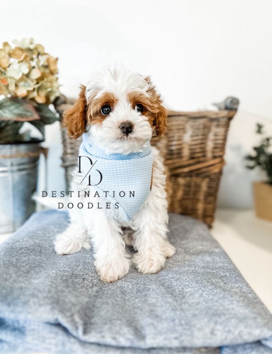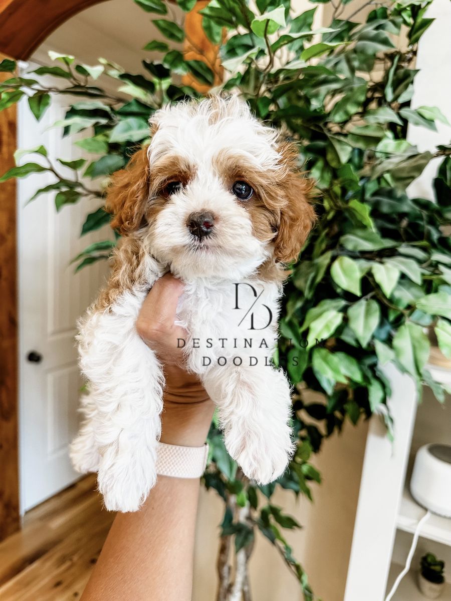 Auggie is a tiny but mighty 4lb multigen Cavapoo with 36.5% Cavalier genes. Most Cavapoos this small are nearly all Poodle, but Augustus brings that lovable Cavalier temperament in a compact package. We own his dad and grandma, and he comes from exceptional, well-known lines.
