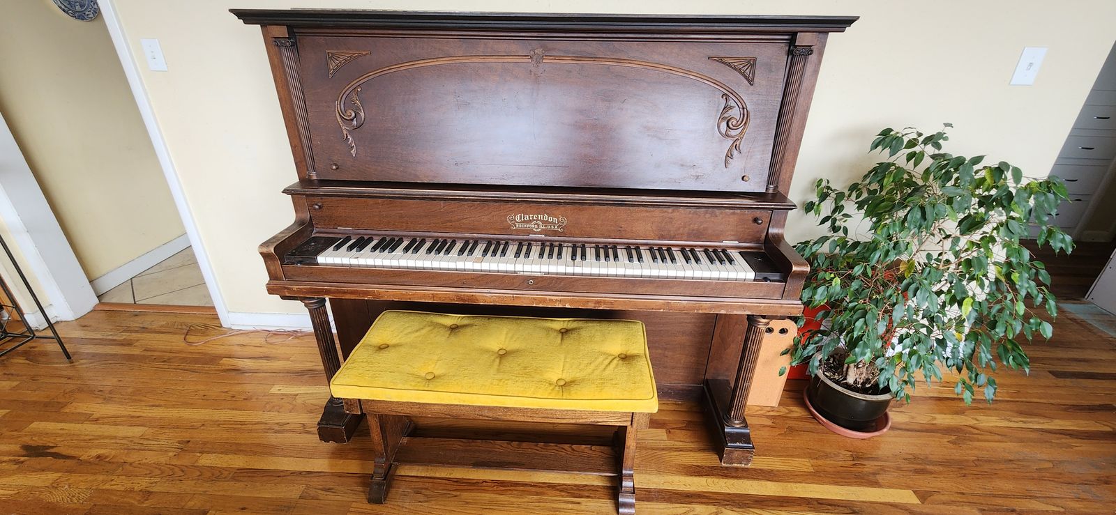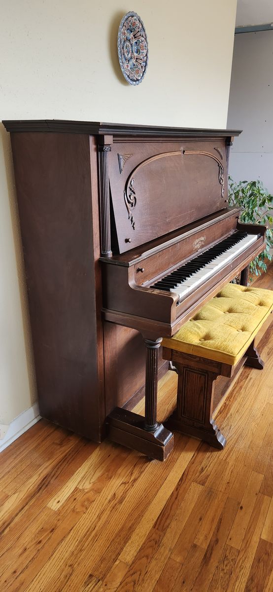Beautiful antique Clarendon piano that has been a joy to play. It would make a wonderful instrument for a beginner or a young person learning to play the piano.