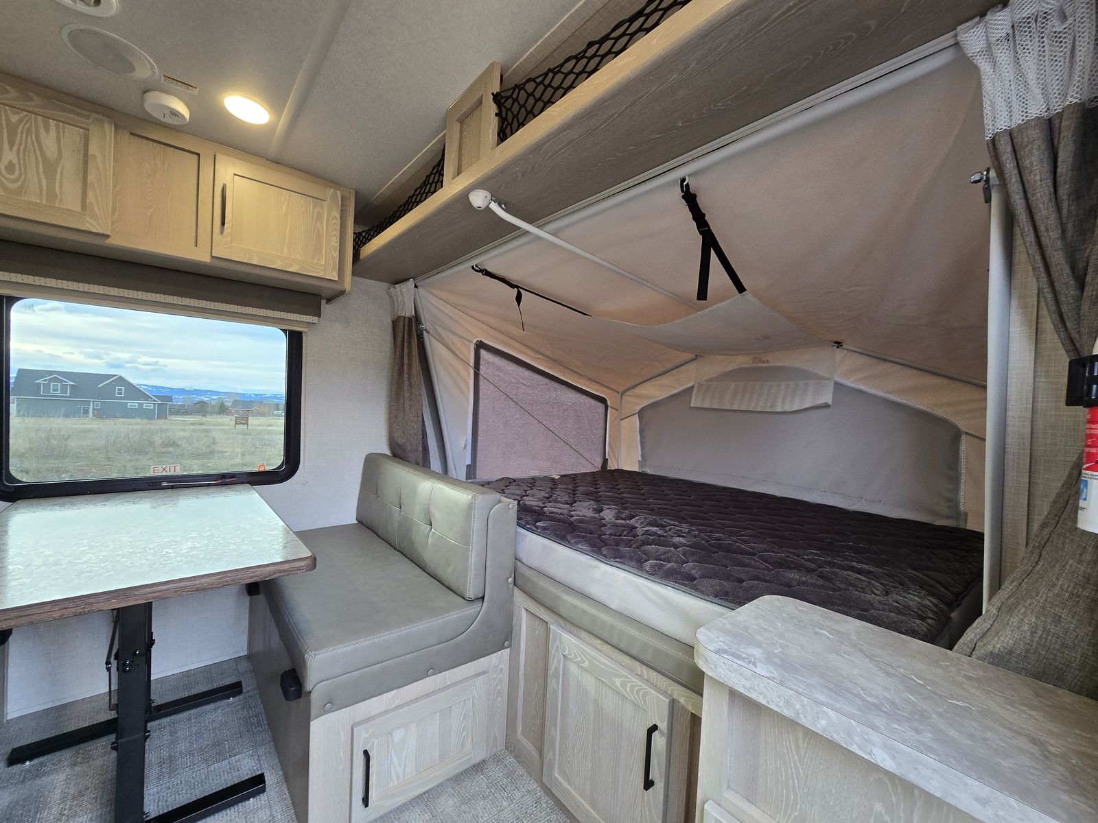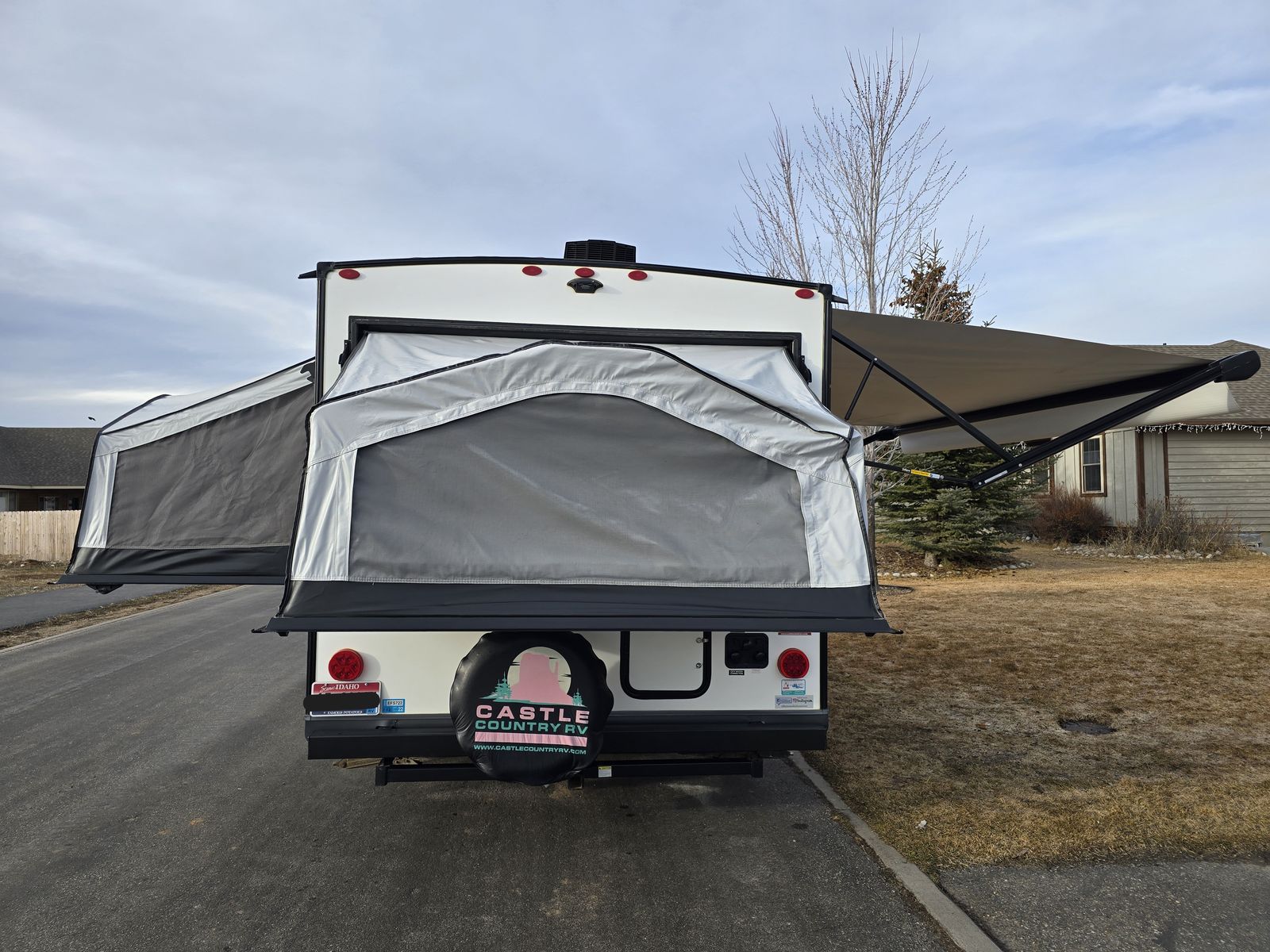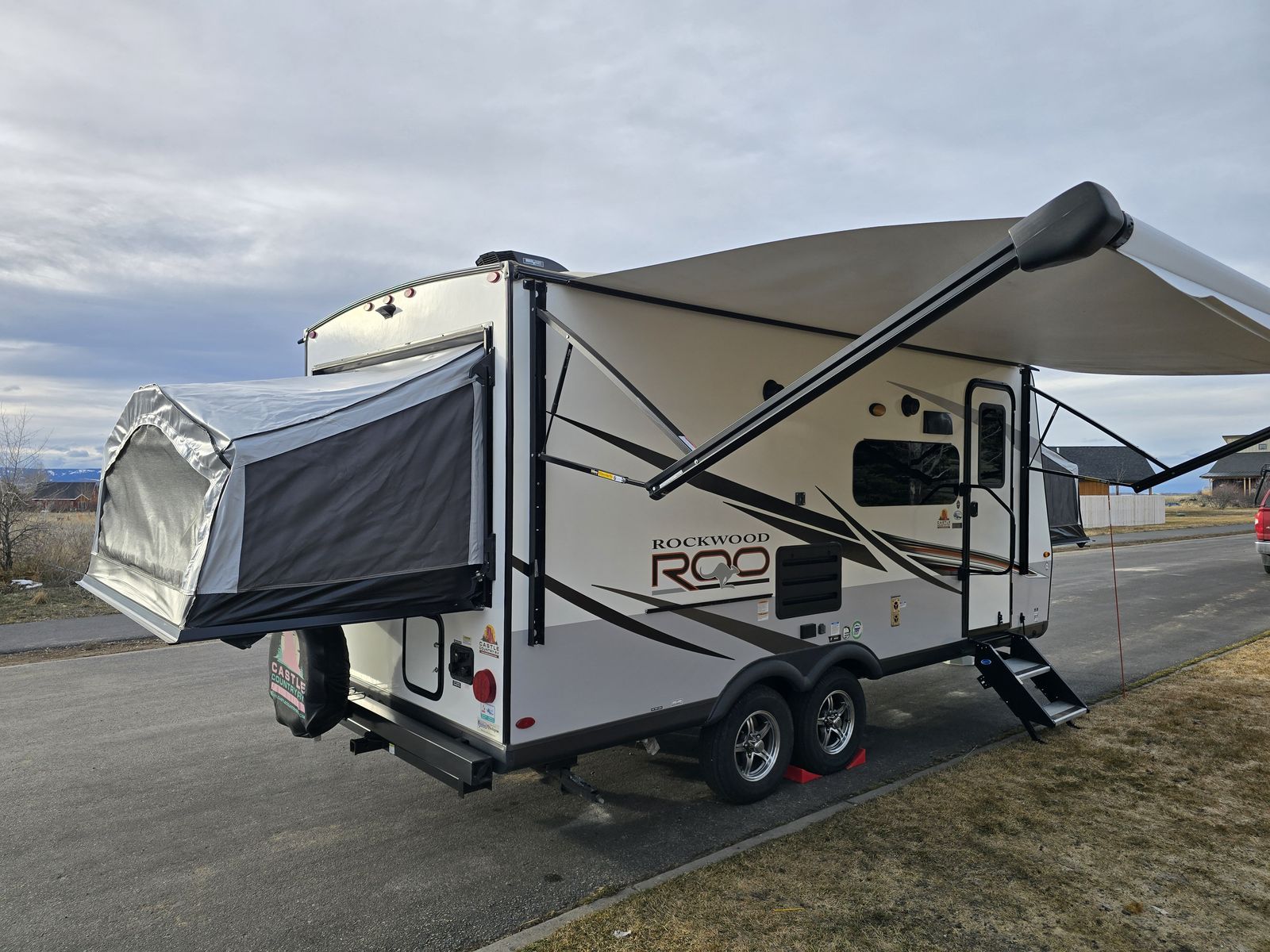 The Rockwood Roo 183 Hybrid trailer is a very hard to find, high quality hybrid that sleeps up to 7 people with 3 queen tent ends and a sleeper-dinette. This Roo has been meticulously maintained and has seen only limited use over the past few years. Always stored under 3-sided cover in the winter and waxed every spring. Tires are in excellent condition and everything on this RV works without issue. It even still has the new RV smell on the inside. Will include a weight distributing hitch system, Pop Up Gizmo tent end covers, insulating tent window inserts, fresh water hose, and Rhino sewer hose. Batteries are newer and the propane tanks are near full. This immaculate RV is ready to go! Full specs for the 2021 Rockwood Roo 183 can be found online. Quick details: Sleeps 7, double axle Rubber-Ryde suspension, 4205 lbs dry, 480 lb tongue weight, full length when closed 21' 2", width 8', height 10' 6", fresh water 54 gal, grey water 30 gal, black water 30 gal, roof A/C, ducted heating 35000 btu, fridge/freezer gas/electric, 3 burner cooktop, oven, 15' adjustable rain dump power awning w/LED lights, solar ready, 2 powered roof vents/fans, tons of storage, bed fans & lights, and so much more. Reach out for additional details or if you have questions. You will not find a Roo in better condition...unless its new.