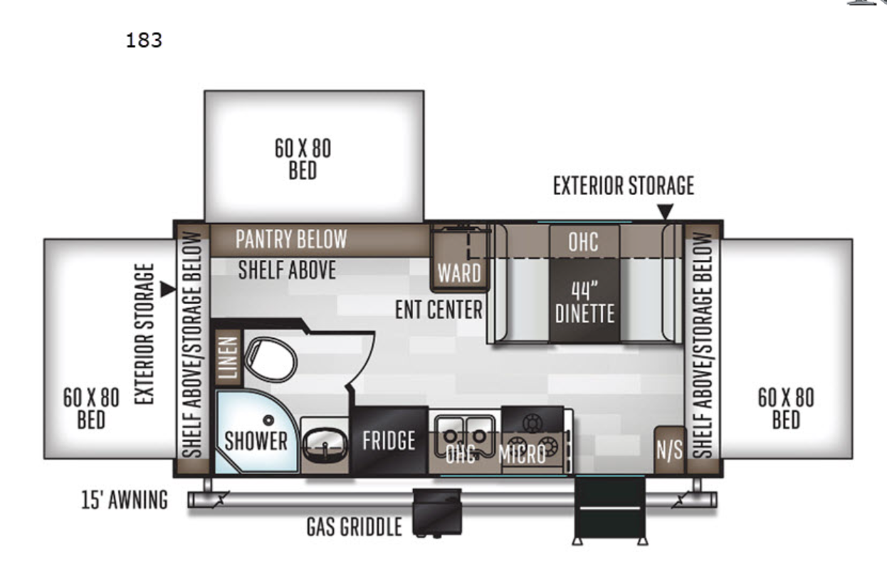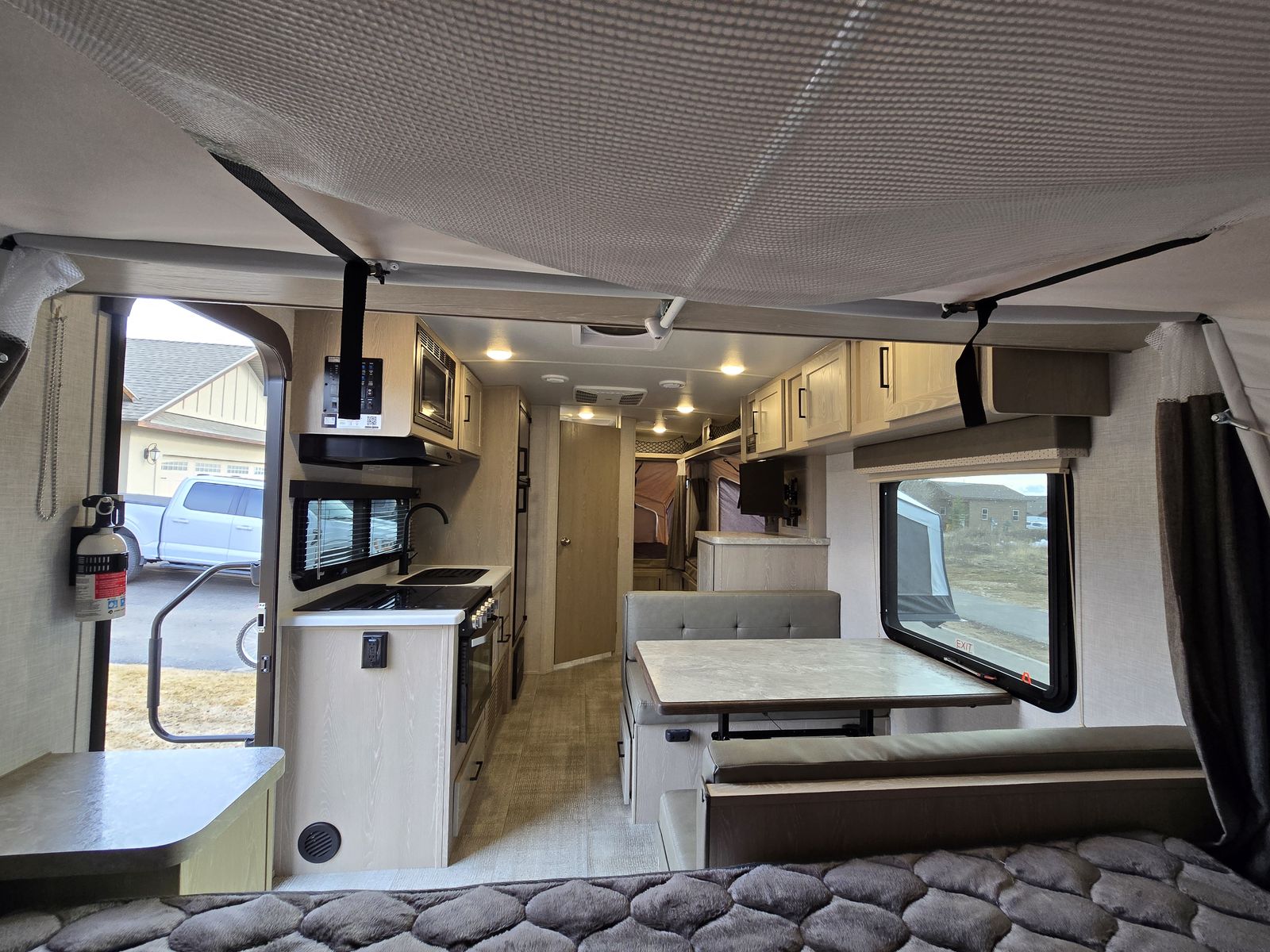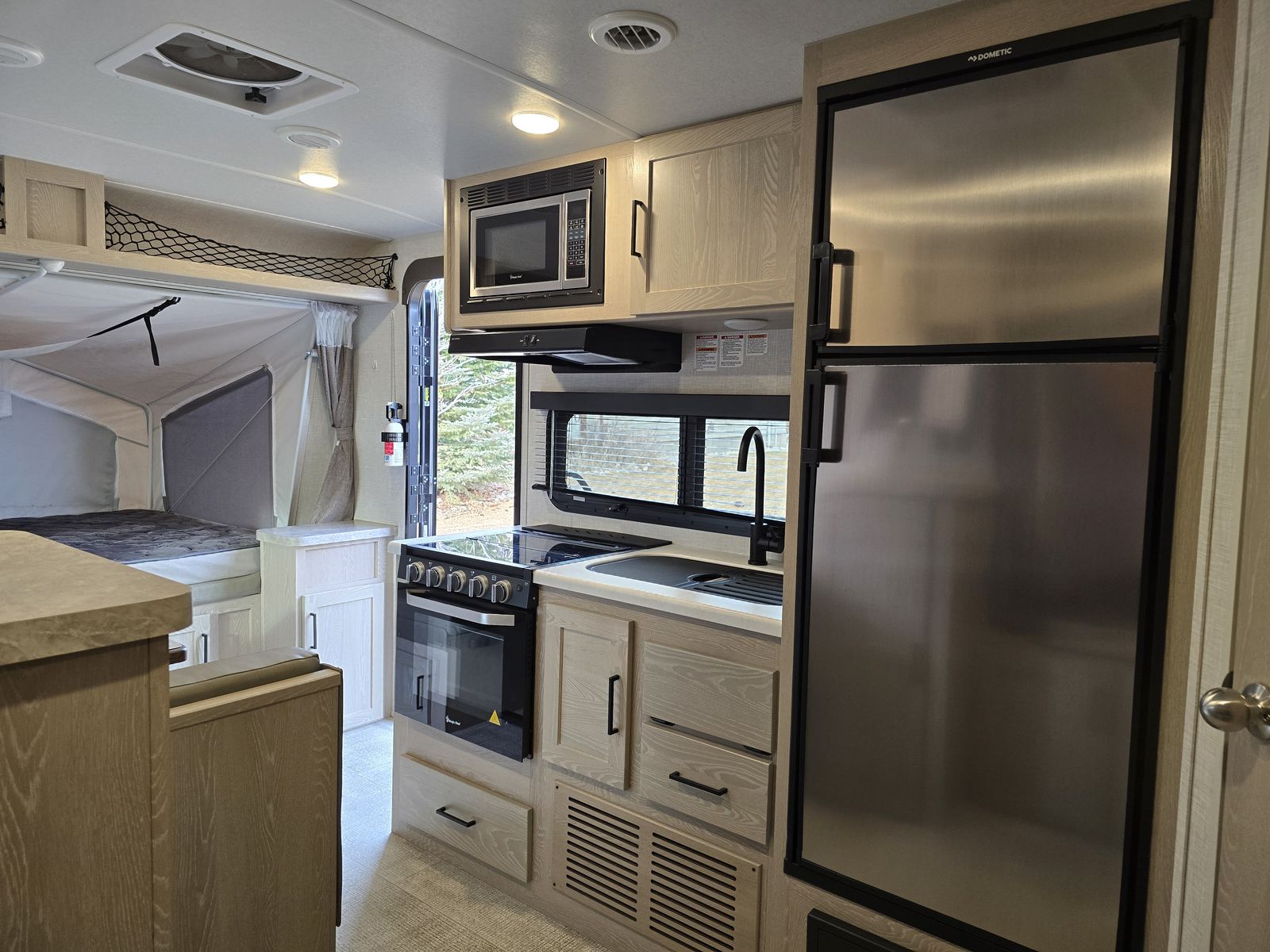 The Rockwood Roo 183 Hybrid trailer is a very hard to find, high quality hybrid that sleeps up to 7 people with 3 queen tent ends and a sleeper-dinette. This Roo has been meticulously maintained and has seen only limited use over the past few years. Always stored under 3-sided cover in the winter and waxed every spring. Tires are in excellent condition and everything on this RV works without issue. It even still has the new RV smell on the inside. Will include a weight distributing hitch system, Pop Up Gizmo tent end covers, insulating tent window inserts, fresh water hose, and Rhino sewer hose. Batteries are newer and the propane tanks are near full. This immaculate RV is ready to go! Full specs for the 2021 Rockwood Roo 183 can be found online. Quick details: Sleeps 7, double axle Rubber-Ryde suspension, 4205 lbs dry, 480 lb tongue weight, full length when closed 21' 2", width 8', height 10' 6", fresh water 54 gal, grey water 30 gal, black water 30 gal, roof A/C, ducted heating 35000 btu, fridge/freezer gas/electric, 3 burner cooktop, oven, 15' adjustable rain dump power awning w/LED lights, solar ready, 2 powered roof vents/fans, tons of storage, bed fans & lights, and so much more. Reach out for additional details or if you have questions. You will not find a Roo in better condition...unless its new.