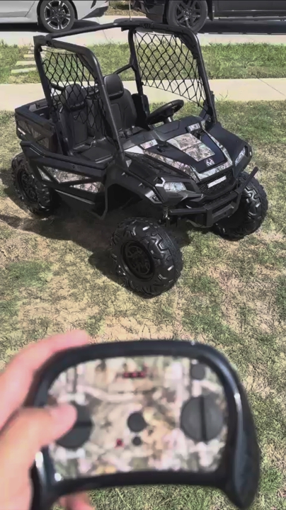 The ride-on can be operated by children using the controls or by parents via the included 2.4 GHz remote control, offering versatile supervision.