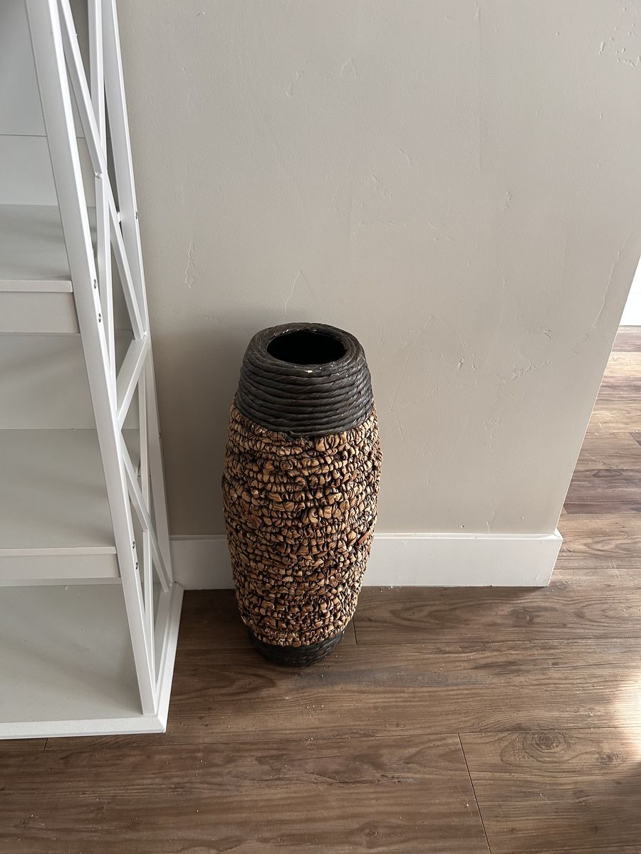 VenmoWicker type floor vase. Looks great with pampas grass 23” tall