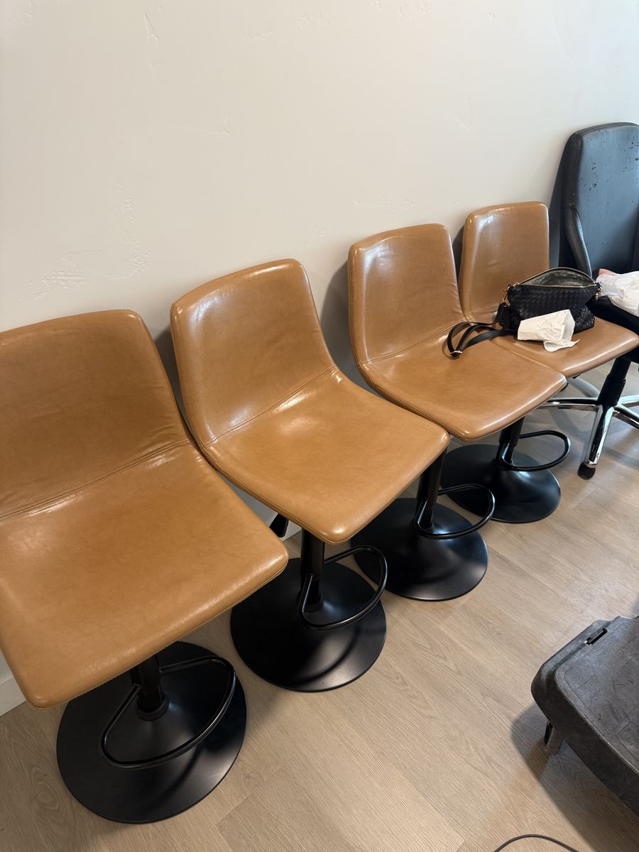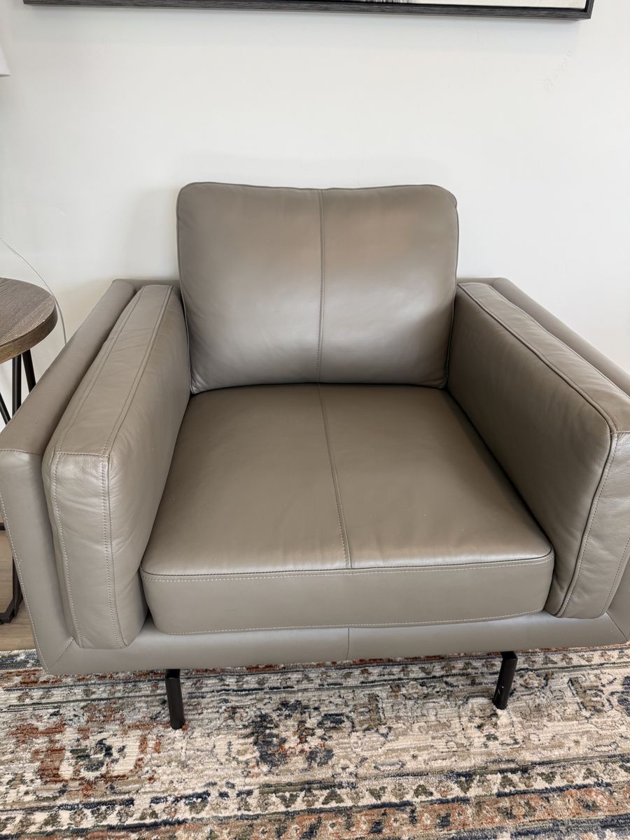 VenmoStylish grey leather sofa with chair and 4 camel bar stool! $150 OBO!