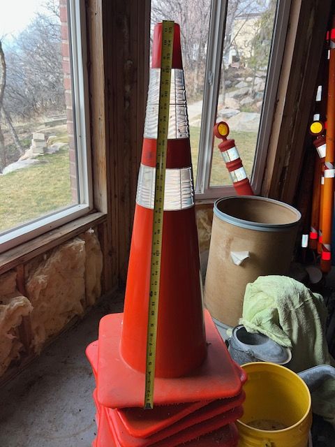 11-Large, HD Reflective Safety Cones, 35' high. 7 are new 4 used in great shap. Sold as a group. $80.00 for all