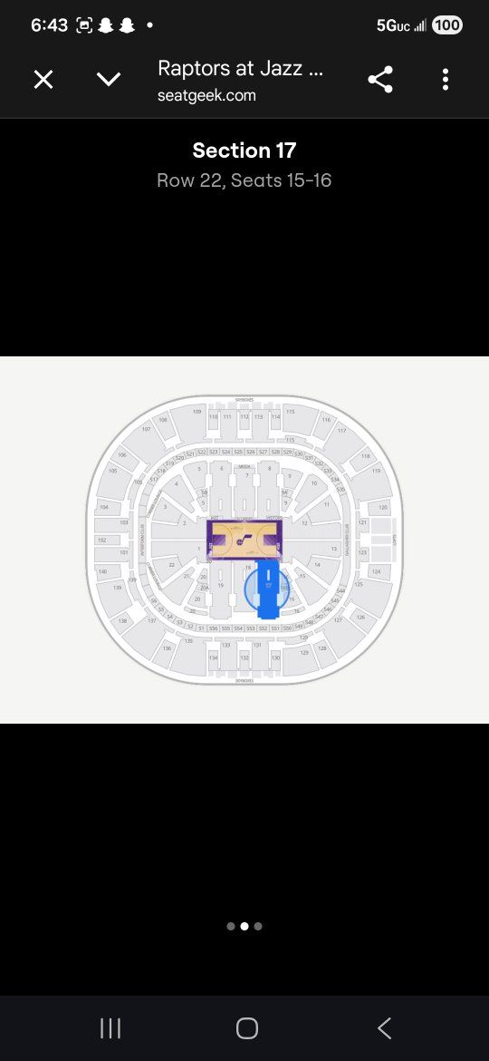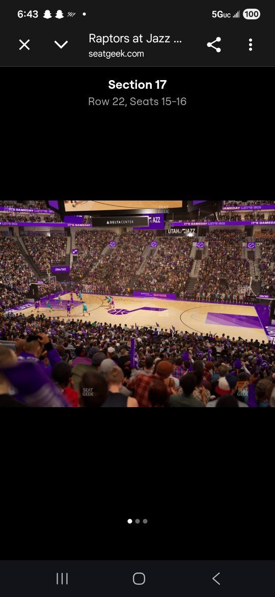 CashApp2 tickets to The Toronto Raptors vs The Utah Jazz Monday March 23rd at 7:00pm Section 17 Row 22 Seats 15 & 16 80$ each