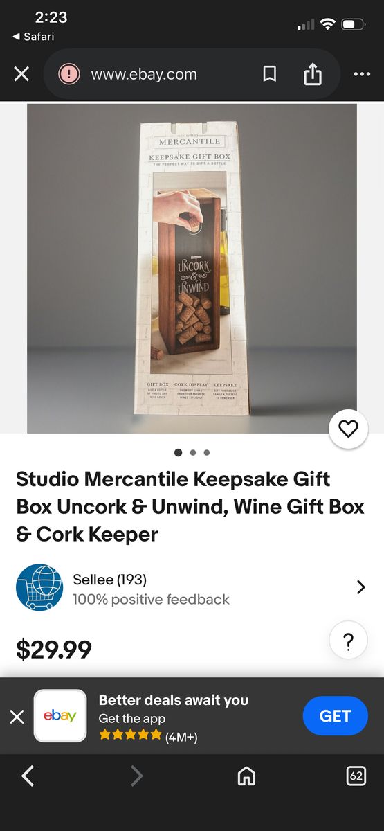 VenmoStudio Mercantile Keepsake Gift Box Uncork & Unwind, Wine Gift Box & Cork Keeper